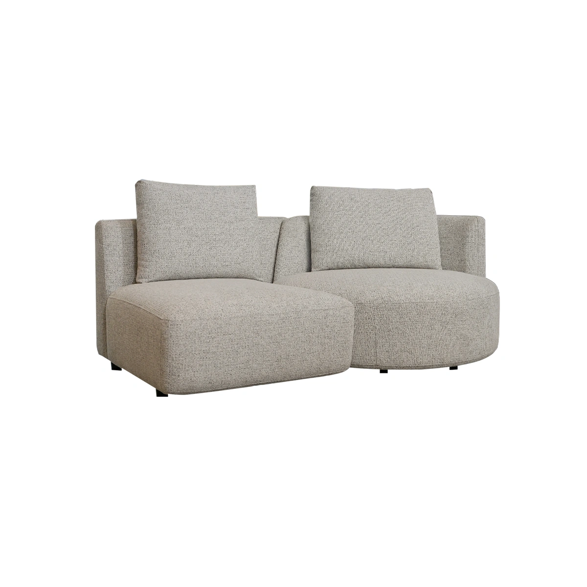 The Lugano Armless Right Curve Module in beige is a flexible modular seating piece created to complete curved sofa compositions. Its smooth form adds visual softness while maintaining a contemporary style. Constructed with woven polyester upholstery, foam and fiber blend filling, and a sturdy birch wood frame, the module ensures comfort and durability. Plastic legs provide reliable support and ease of placement. This module supports creative and ergonomic seating arrangements. It blends seamlessly with other Lugano pieces, offering comfort, adaptability, and modern appeal.