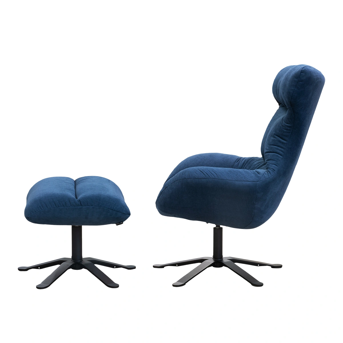 Lungo Armchair with Stool in blue is a fabric lounge chair set created for relaxed comfort and modern interiors. The included stool provides additional support for extended seating relaxation in living rooms and bedrooms.