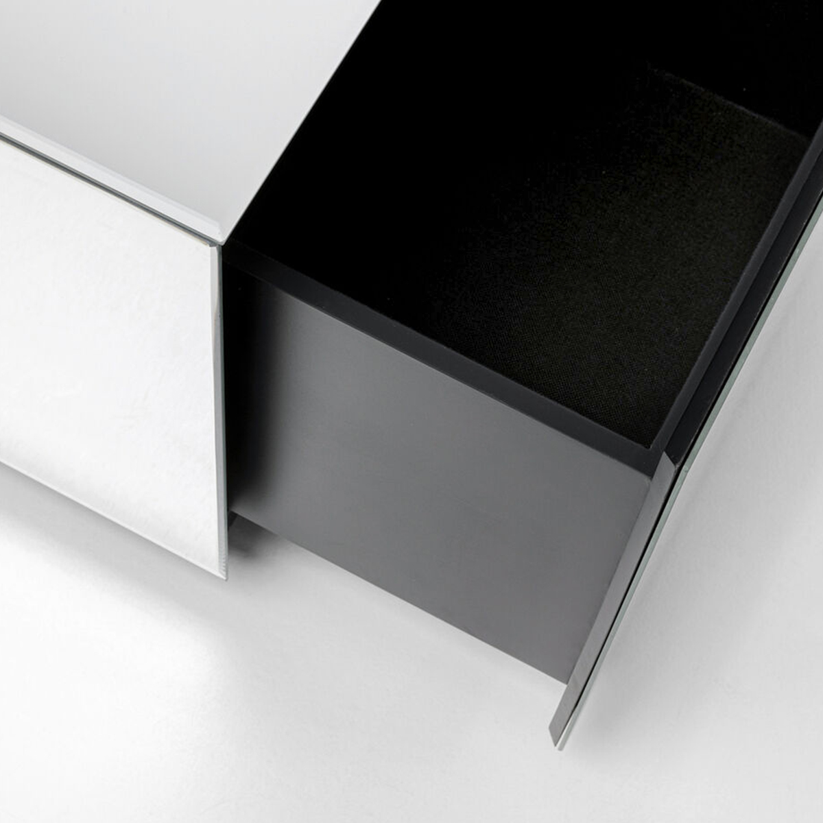 Corpus and Fronts: MDF Lacquered (Painted MDF); Paneling: Glass Mirrored (Reflective Glass)