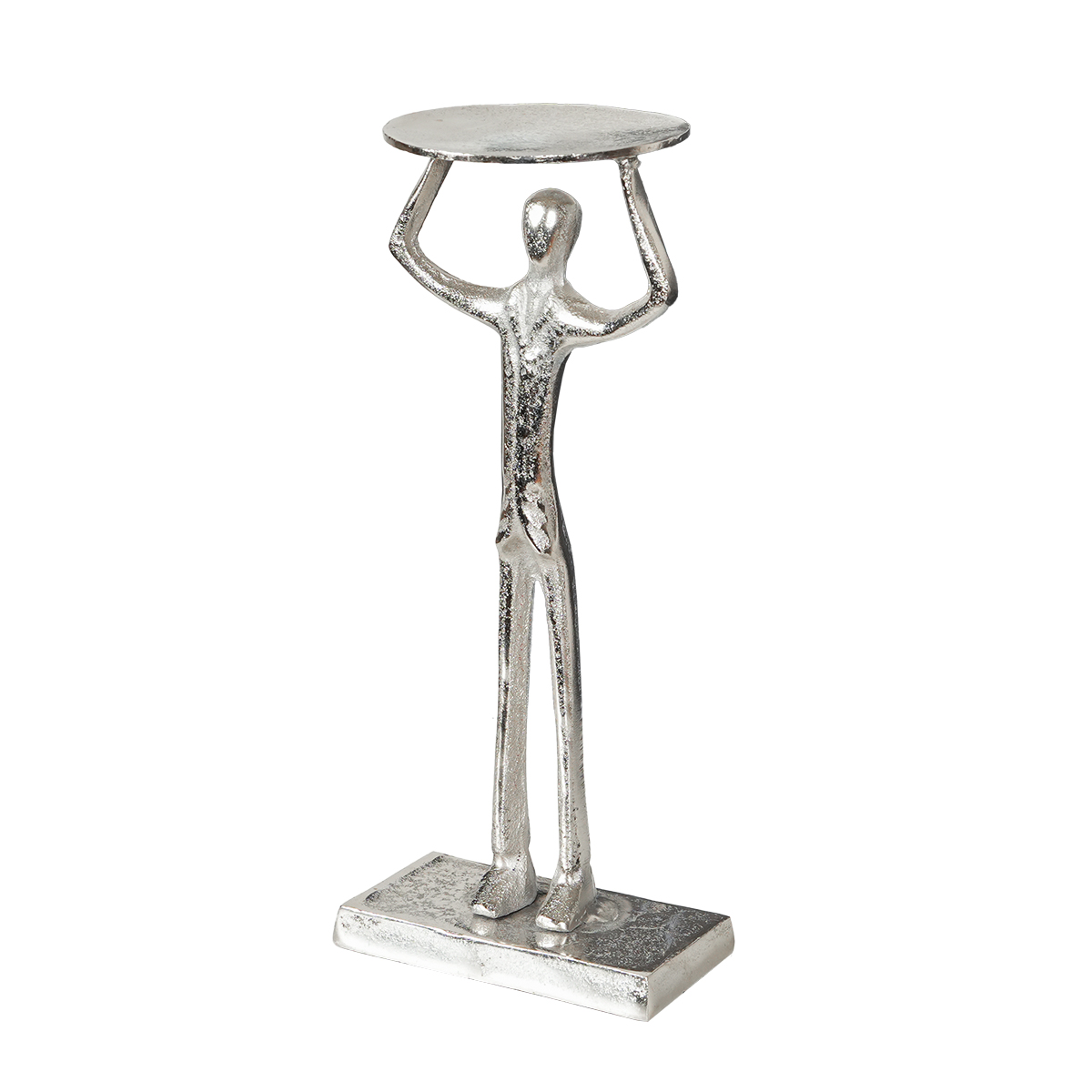 Man Lifting Pillar Holder Large in Raw Silver captures attention with its expressive form. A decorative accent that brings artistic flair and dimension to any modern interior.
