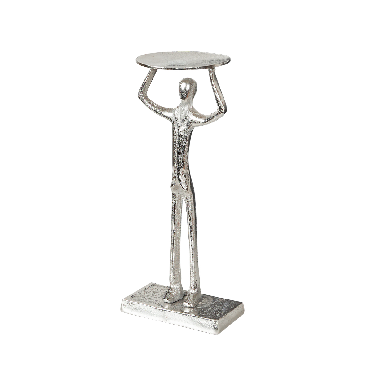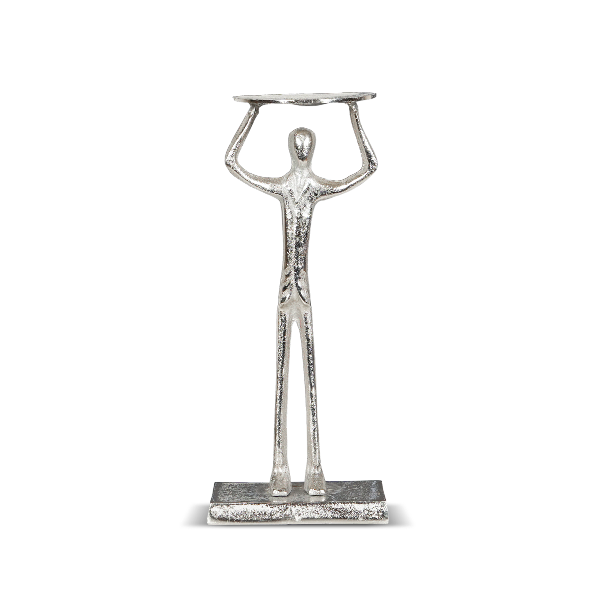 Man Lifting Pillar Holder Small in Raw Silver adds character and depth to your space. Its artistic design symbolizes strength and creativity, perfect for shelves or side tables.