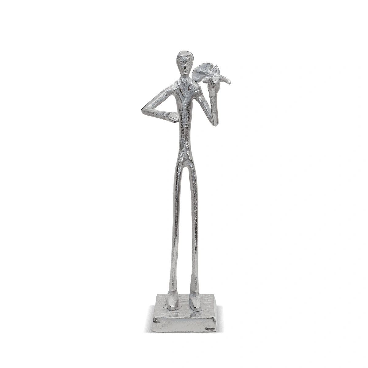 Standing at a height of 41 cm with a length of 12.5 cm and a width of 9.5 cm, this figurine is a striking blend of elegance and creativity. Crafted from high-quality aluminium with a raw silver finish, it showcases a man engrossed in playing a violin, a piece that is sure to catch the eye.