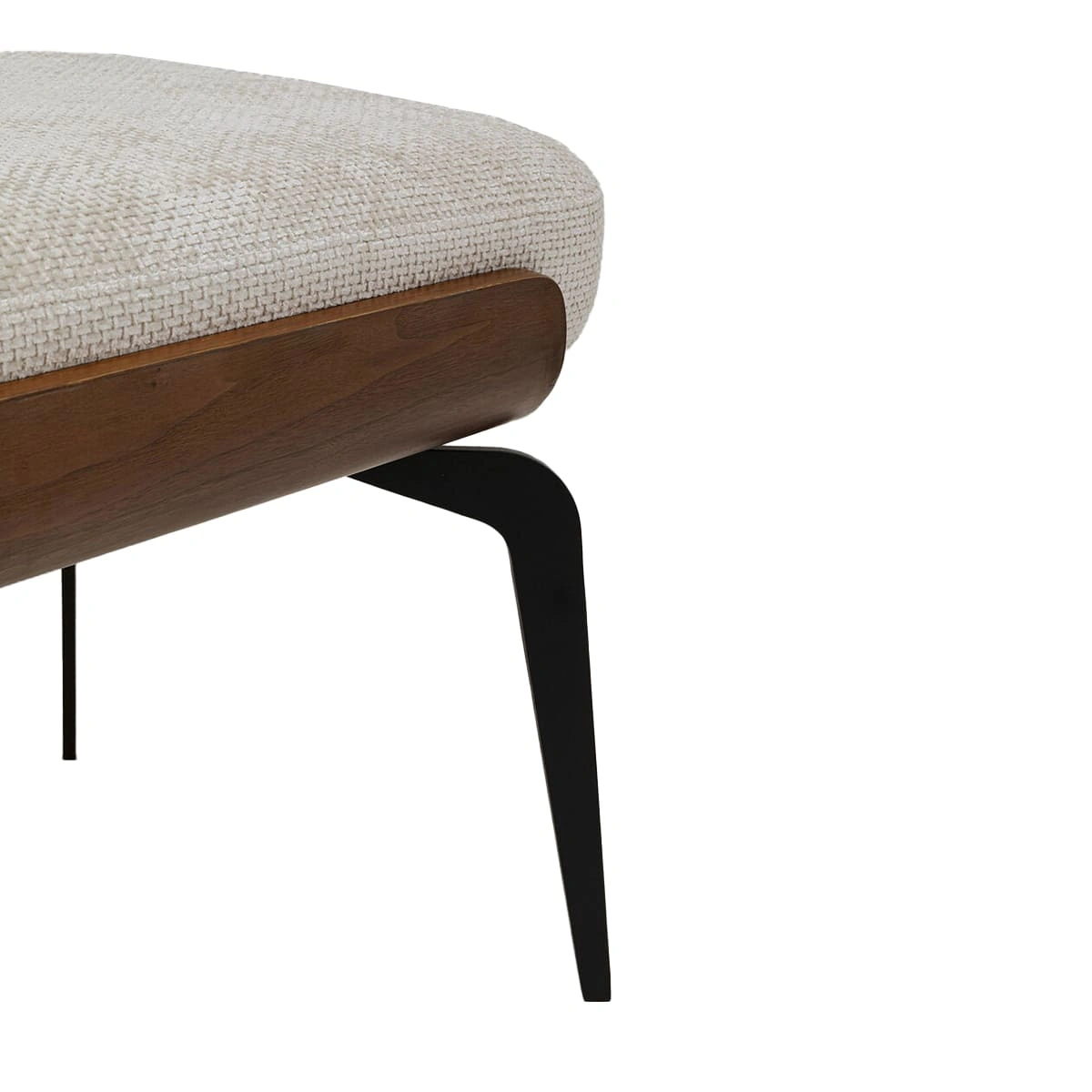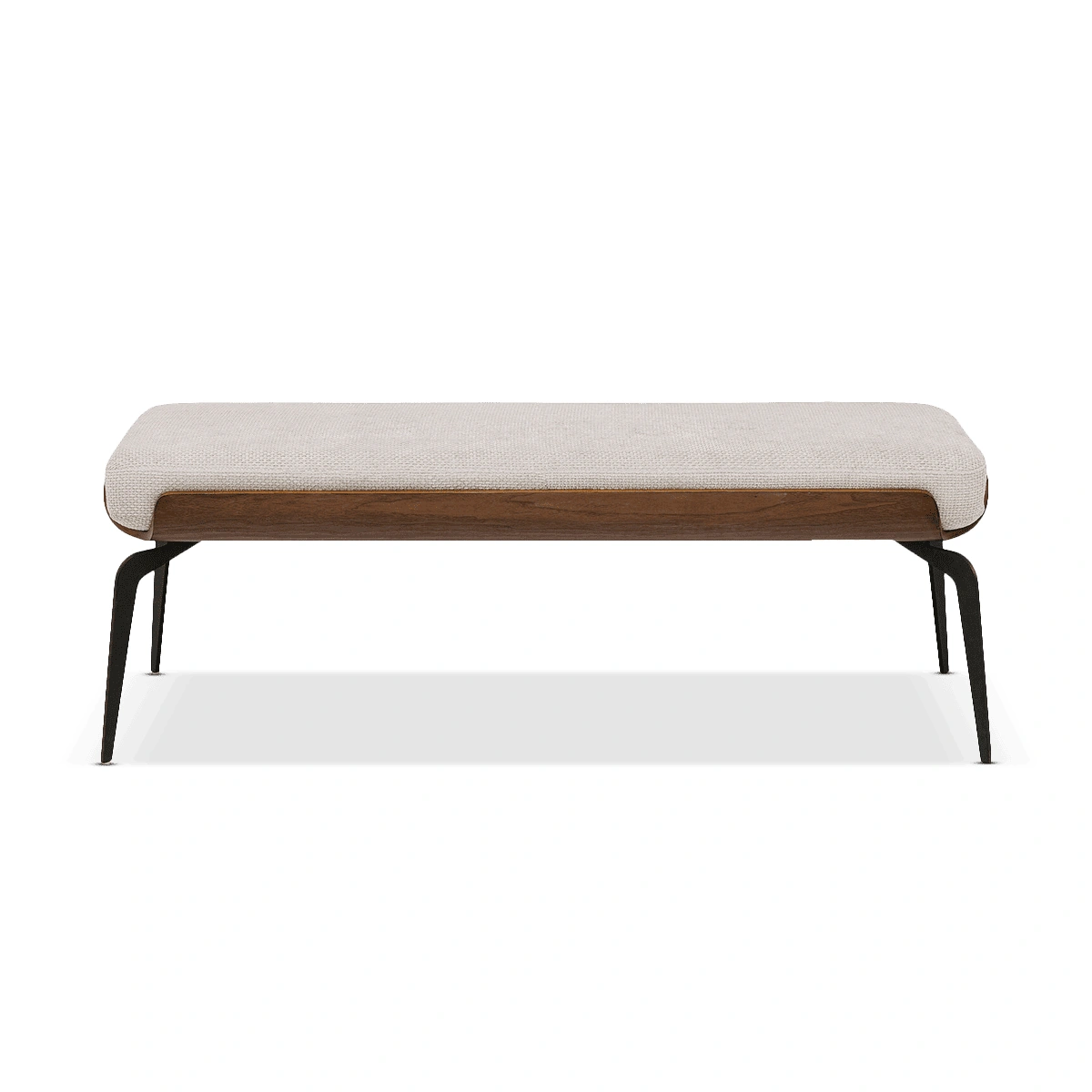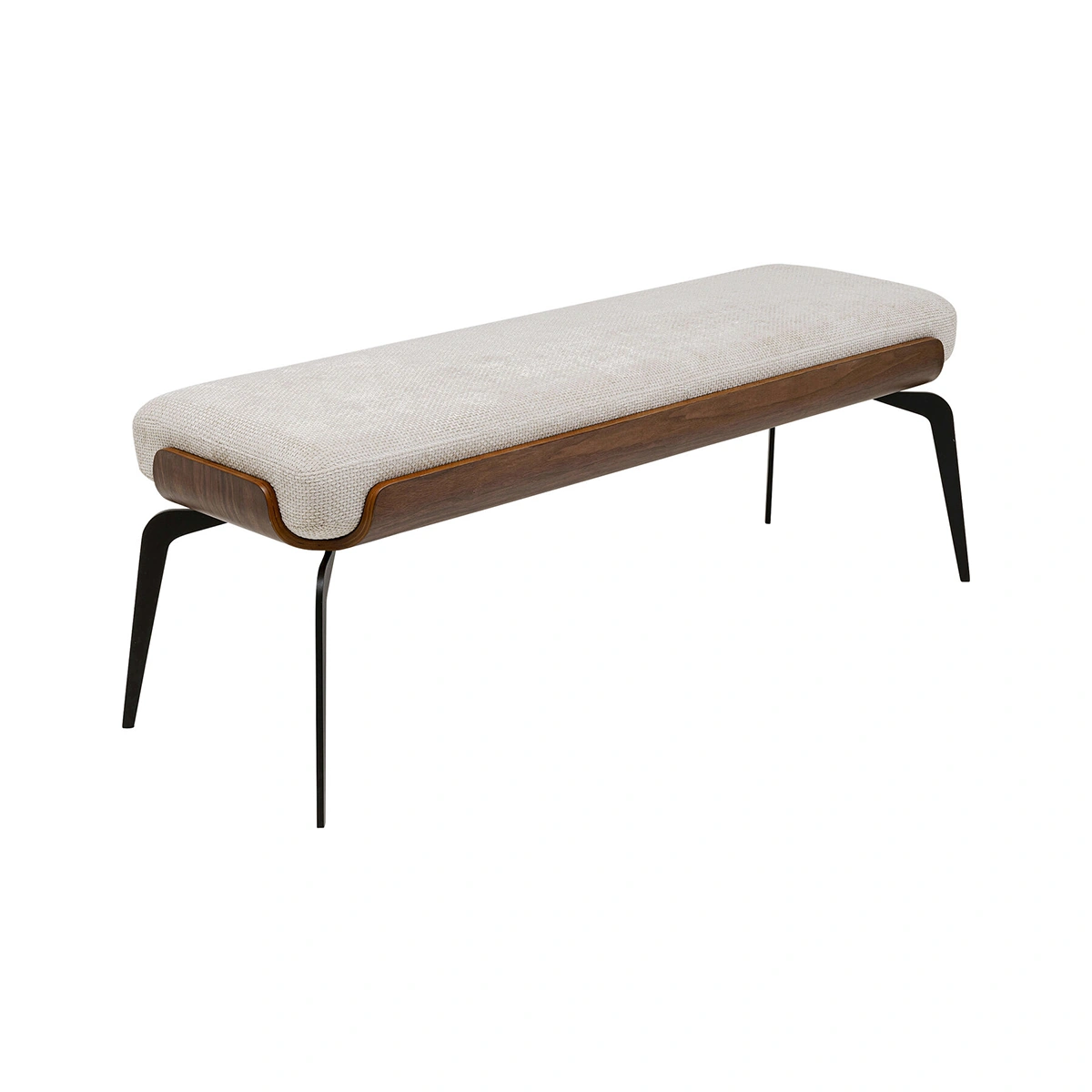 A tribute to modern living with a natural twist: this narrow upholstered bench combines clean lines with fine details, making it a subtle design statement. The light beige cover brings lightness to the interior and impresses with its pleasant feel and high durability. The look is rounded off by warm-toned wooden elements made of solid beech, which form a charming contrast to the graphic black steel frame. Whether in the hallway as a stylish shelf, in the living area as additional seating or at the foot of the bed - this all-rounder blends effortlessly into a wide variety of rooms and scores with character and function.