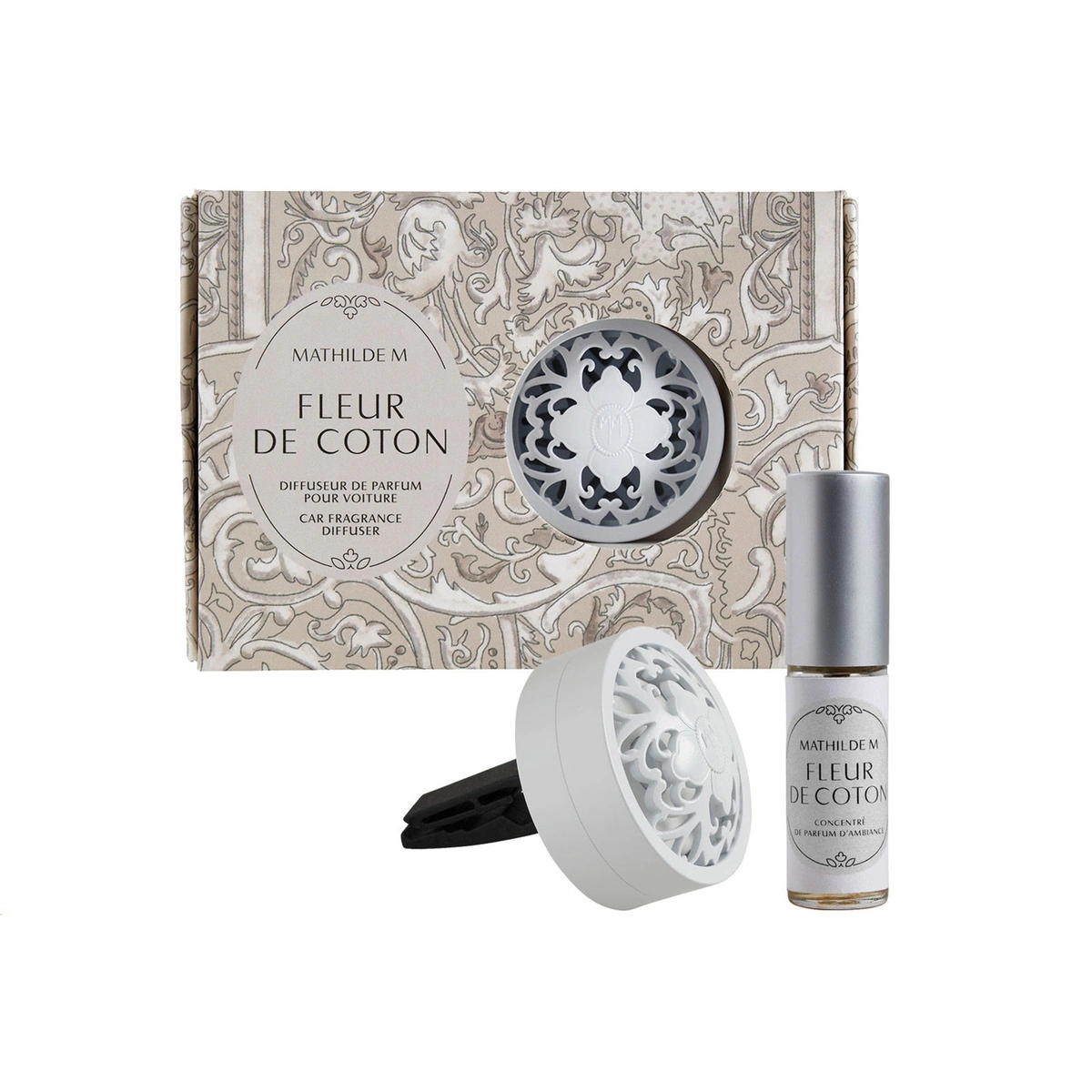 Succumb to Fleur de Coton, a soft and comforting blend of white flowers, cotton, and precious woods. This car fragrance diffuser turns every drive into a sensory escape, presented in an elegant, hand-drawn 18th-century inspired design.