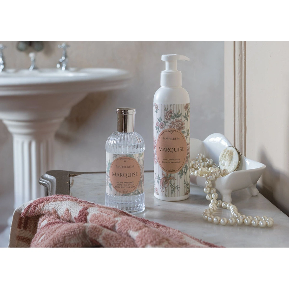 Indulge in Marquise by Mathilde M - a sensual blend of woody, spicy, and sweet vanilla notes. Nourish skin with our 96% natural Divine Body Milk.