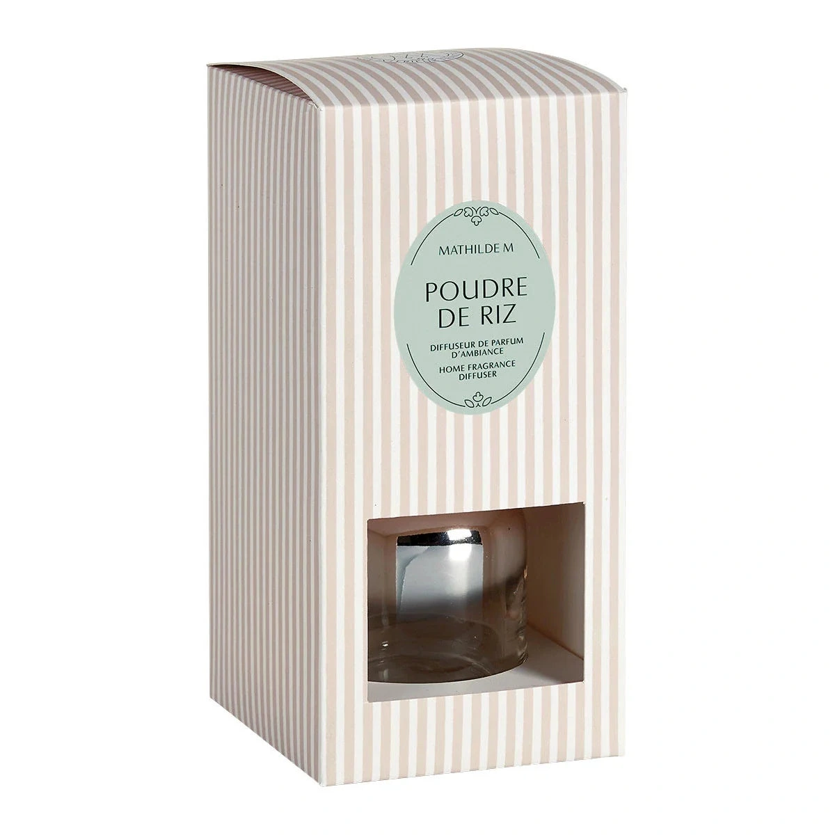 Discover Rice Powder, a soft and velvety fragrance with tender powdery and floral notes. The elegant Valse Florale diffuser features handcrafted porcelain flowers and a copper-toned glass bottle, gently releasing a long-lasting, delicate scent throughout your home.