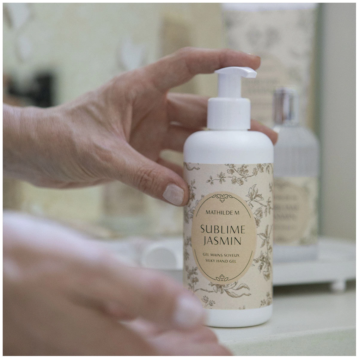 Experience Sublime Jasmine, an addictive blend of jasmine, orange blossom, vanilla, and white musk. This aloe-vera-enriched hand cleansing gel creates a creamy, scented foam that leaves skin soft and delicately perfumed. Made in France with 95% naturally derived ingredients.