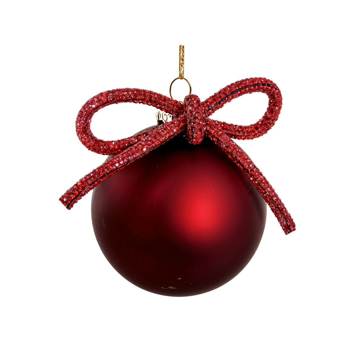 With an 8cm size, this ornament is crafted from top-quality glass, featuring a matte finish that exudes sophistication. The classic red tone and dainty bow detail add to its charm, making it a perfect addition to your festive decor.