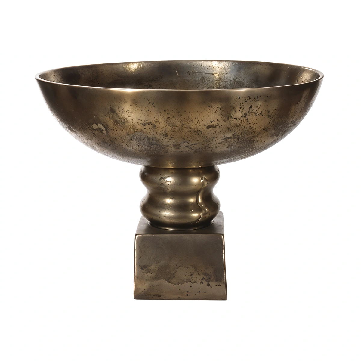 Adorn your table with the timeless elegance of the Antique Gold Aluminium Metal Bowl on Foot. This medium-sized centerpiece blends style and function effortlessly, steeped in a warm gold finish.