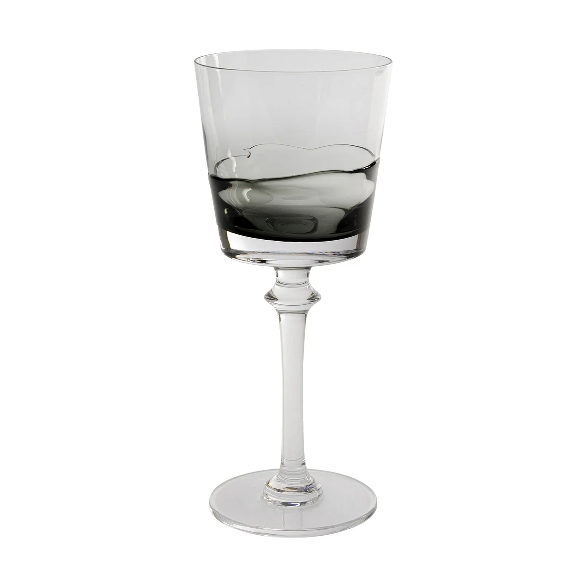 Key features of this wine glass include its cool dark grey accents and a size of 20.6 x 8.6 x 8.6 centimeters (H/W/D). Made from colored glass, its abstractly shaped details are captivating. The wine glass has a generous capacity of 320 ml, ensuring a full-bodied enjoyment experience for fine wines.