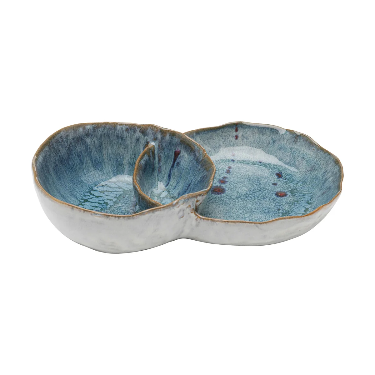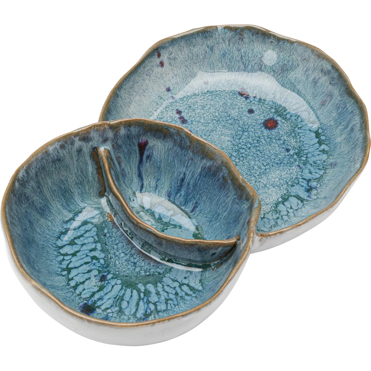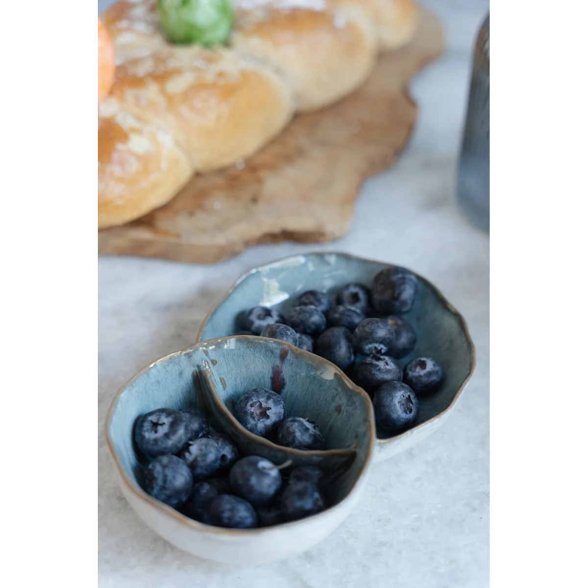 The Mina Multicolored Stoneware Dip Bowl, reminiscent of a serene ocean with its flowing watercolor patterns in intense blue hues, brings a touch of maritime freshness to your table.
