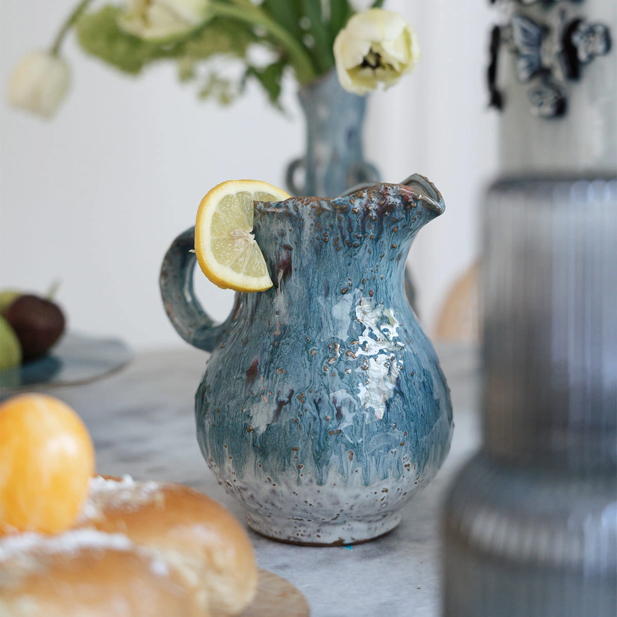 Perfect for everyday use or special occasions, the Mina jug is dishwasher and microwave safe. Whether you're hosting a laid-back brunch or a formal dinner, it brings a touch of sophistication and a splash of color to your meals. The jug pairs well with natural materials such as linen napkins or wooden accessories, further enhancing its maritime charm.