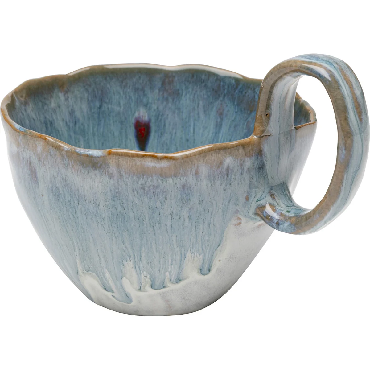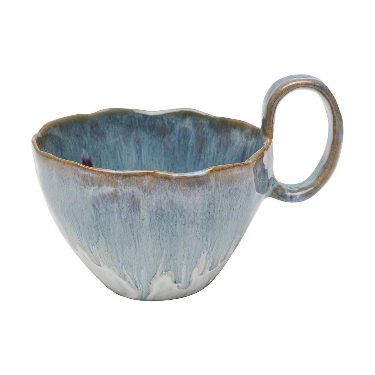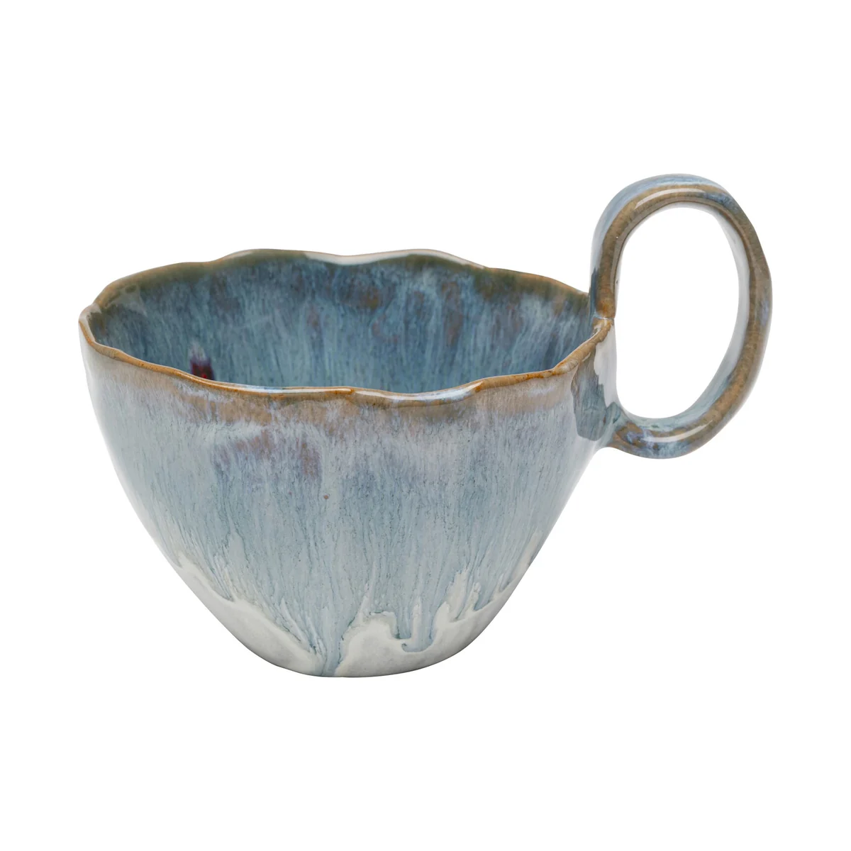 Key features of the Mina Mug include its organic shape and subtle brown accents, giving it a handcrafted look. Sized at 13 x 10 x 9 centimeters, it's made from high-quality, glazed ceramic, making it as functional as it is decorative. Its rich blue nuances and glossy finish further enhance its aesthetic appeal.