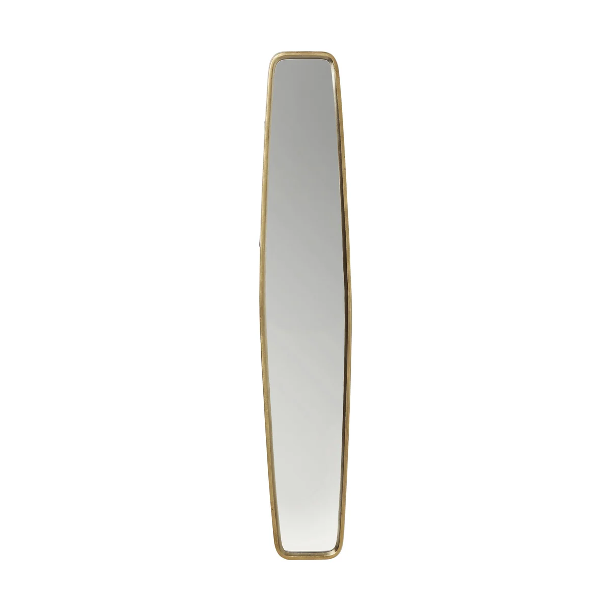 The mirror boasts a sleek, modern design with a gorgeous golden brass frame. Its impressive height of 177 cm and width of 32 cm makes for a compelling visual element. The mirror is made from high-quality glass, ensuring durability and a clear reflection.