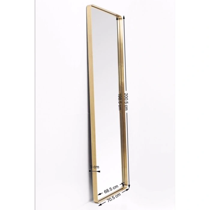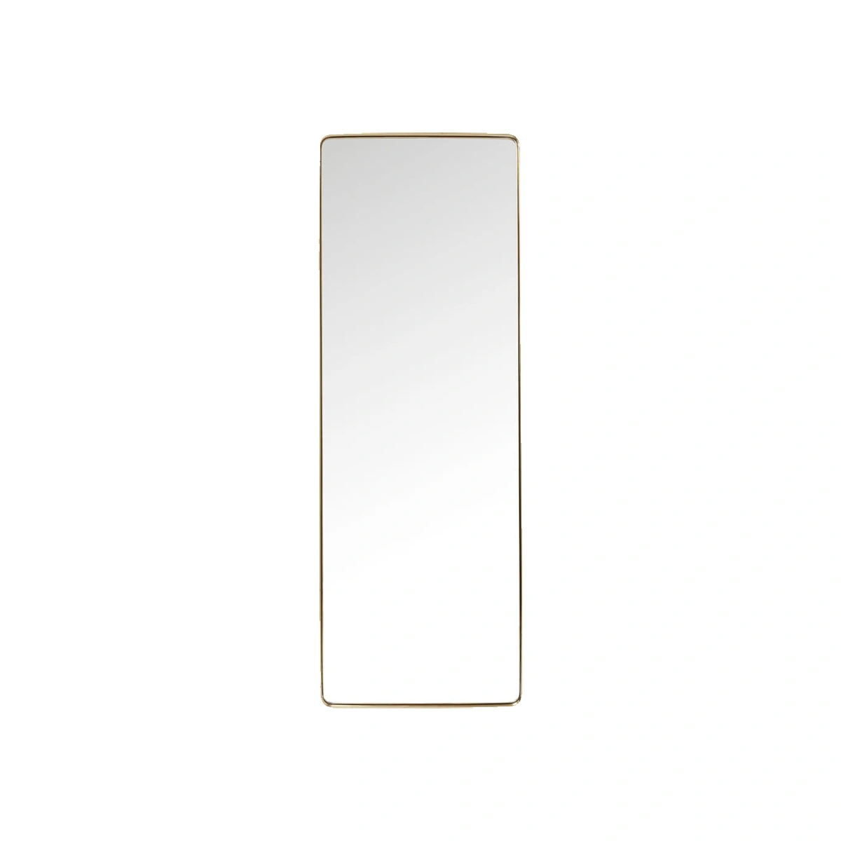 • Rectangular, two-metre-high wall-mounted mirror in a reduced silhouette with steel frame in brass