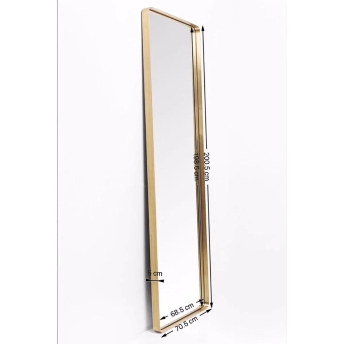 The mirror measures L 70 cm by H 200 cm, with a depth of 5 cm. Its copper frame is paired with a high-quality mirrored glass, exuding a timeless elegance. Its rectangular shape and elongated form lend to its versatile design, making it suitable for various spaces.