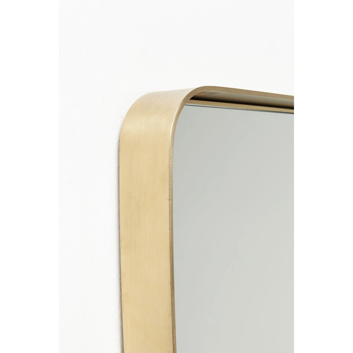 Key features of this mirror include a size of 120X80 cm, making it a substantial piece that commands attention. The mirror is made with high-quality mirrored glass, ensuring a clear and accurate reflection. The rectangular shape and curved design add a modern twist to the classic brass mirror.