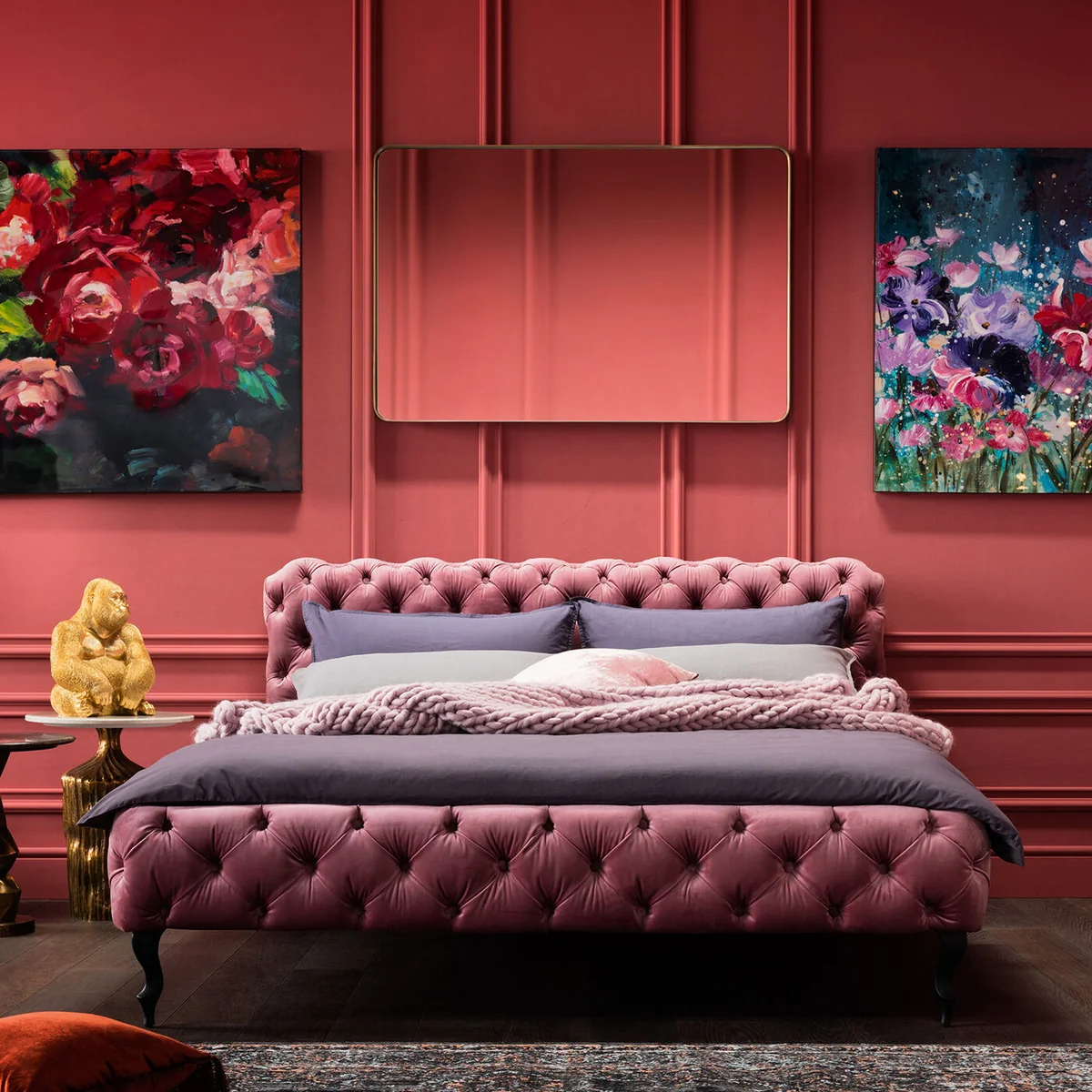 Investing in this mirror means enhancing your home with a piece that not only serves a functional purpose but also adds a hint of glamour. Its golden hue creates a warm and inviting atmosphere, making any room feel more comfortable and luxurious.