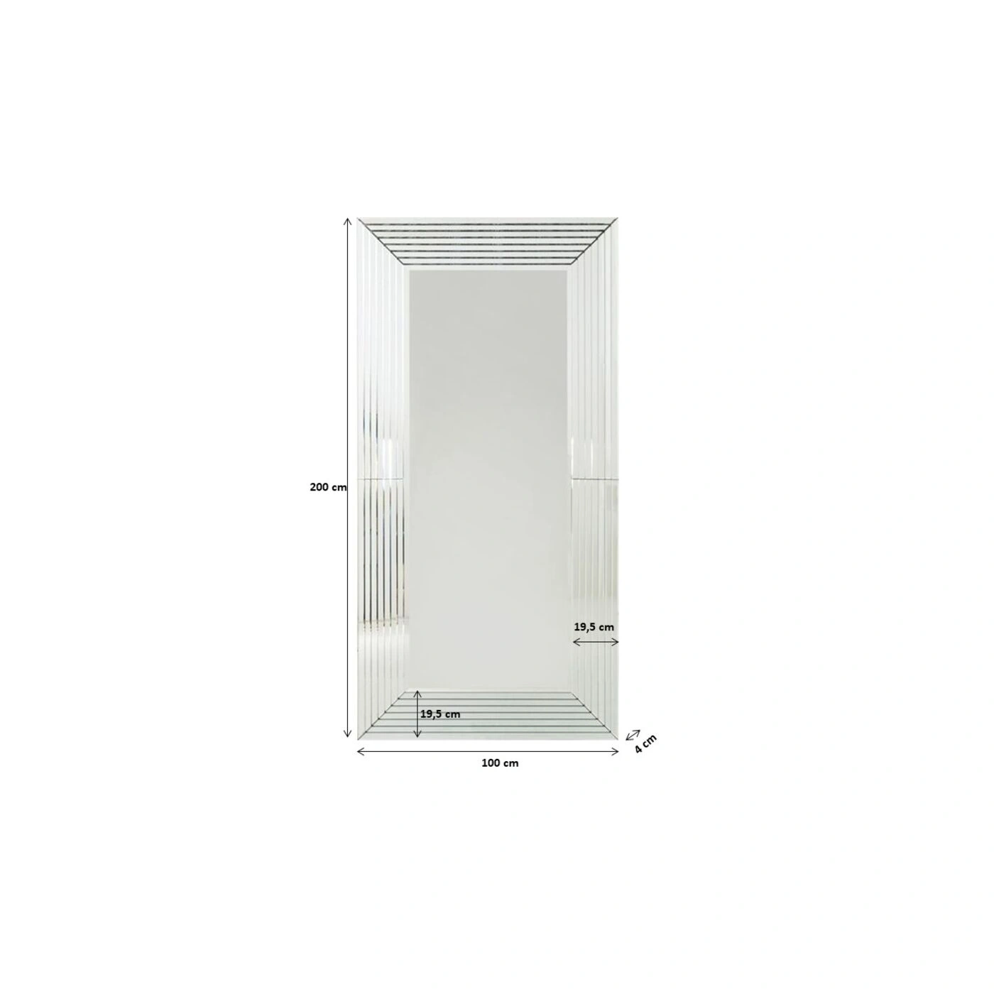 Key features of this mirror include its impressive size, measuring 200 cm in height and 100 cm in width. The mirror is framed in a 4.5 cm deep glass mirrored basematerial, offering a sleek and modern look. It's perfect for contemporary homes, bringing a sense of spaciousness with its reflective surface.