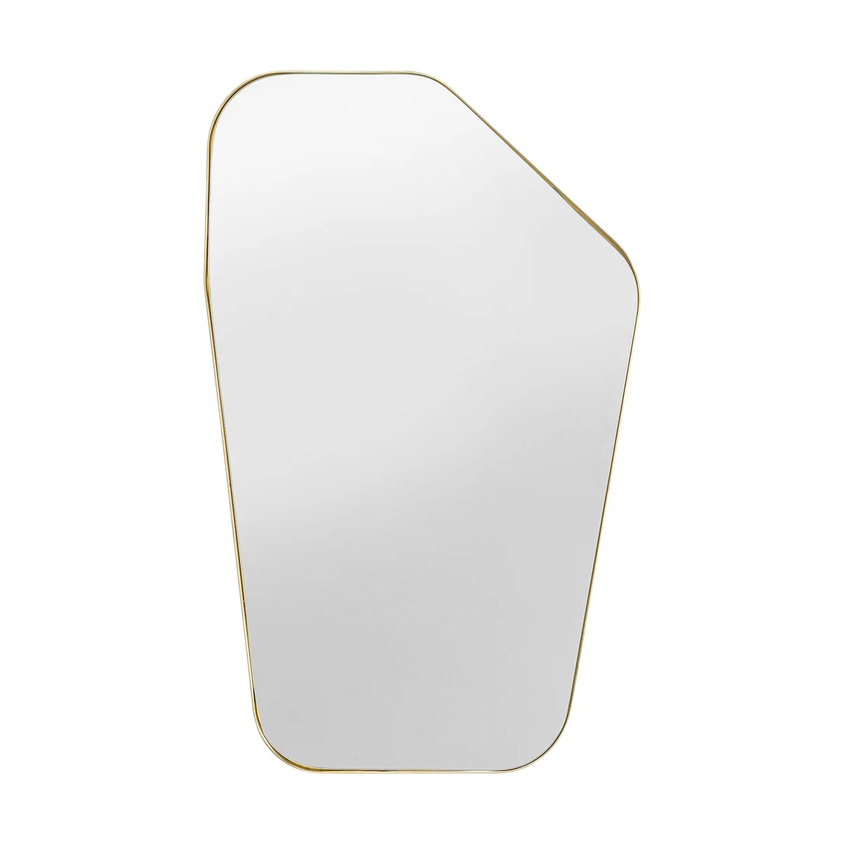 - Exceptional mirror for the wall with a narrow frame in gold - High-quality frame made of stainless steel, enhanced with brass - With its eye-catching shape it’s a sensational wall decoration - Lends personality to hallways, bedrooms, bathrooms and living rooms - Can be conveniently hung horizontally and vertically