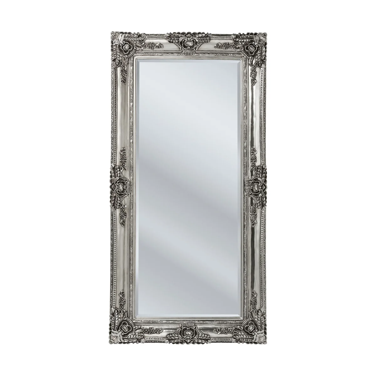 The mirror features a durable polyresin frame coated with metal foil in a silver finish, adding a touch of luxury to any room. The generous dimensions of 104 cm length and 203 cm height are designed to create a bold statement, while the depth of 8.5 cm ensures a sturdy and reliable structure.