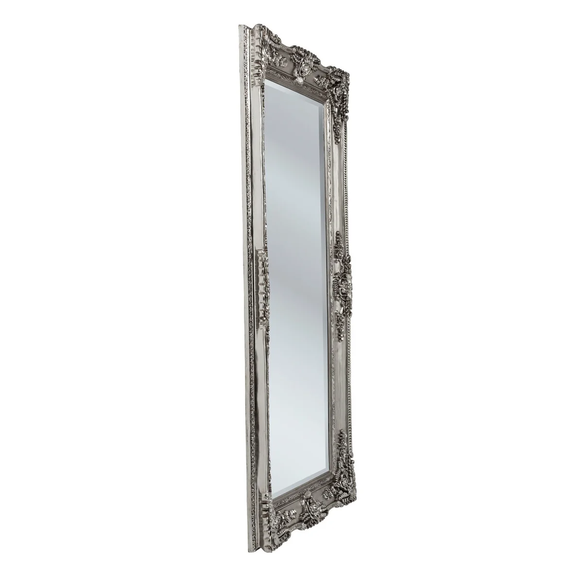 Reflect elegance and style with the Silver Polyresin Metal Foil Coated Royal Residence Mirror. This large, 203x104cm mirror is perfect for adorning your royal residence.