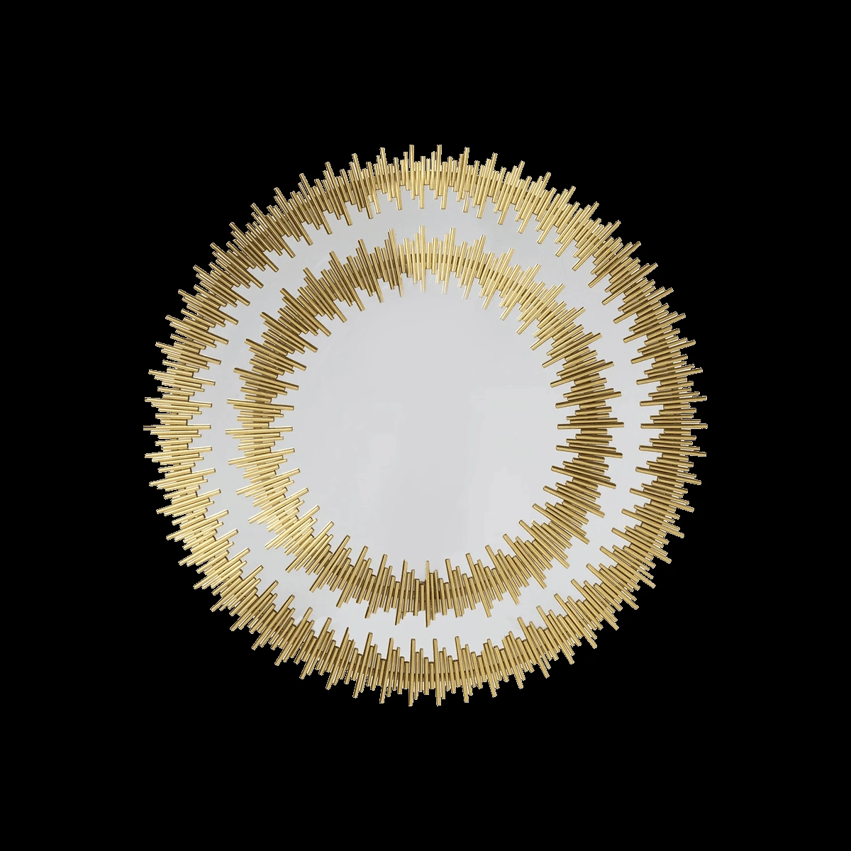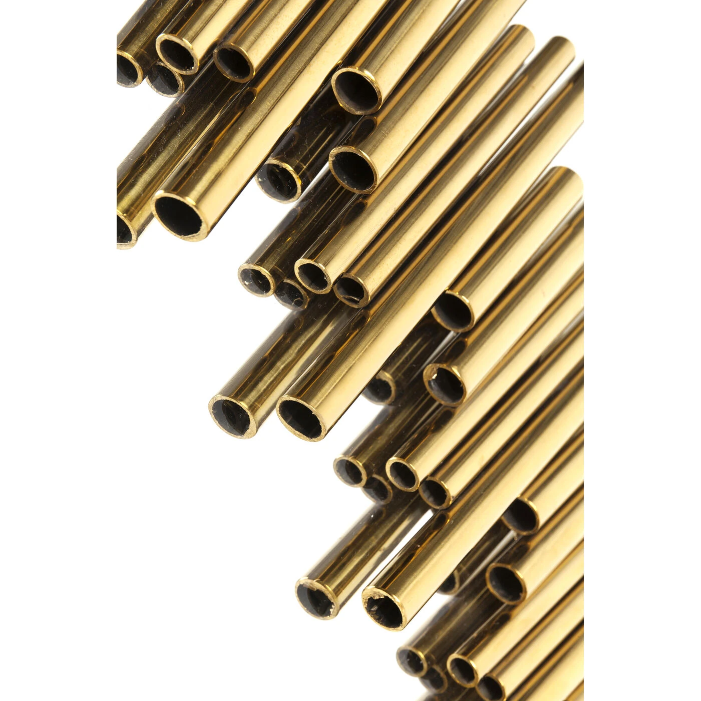 The Solare Mirror is 132 cm in diameter, making it an impressive focal point in any room. It features a golden frame and a mirrored glass surface. The depth of 5 cm allows the mirror to stand out, adding depth and dimension to your space.