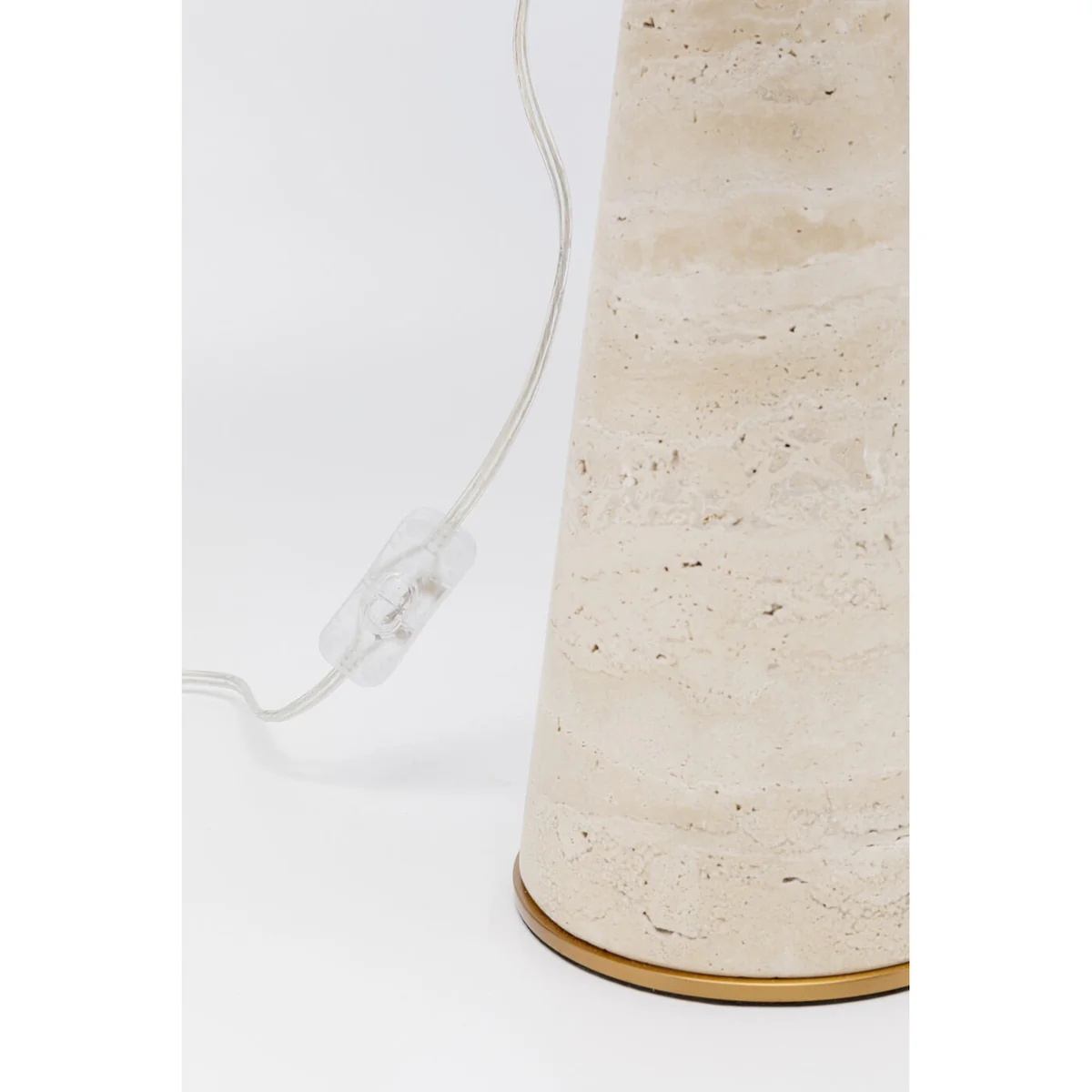 Experience the marriage of modern design and warm, natural elements with the Molto Table Lamp in Beige. This piece pairs a polished steel bar with a flax linen shade and a sturdy limestone base, creating an elegant structure that's perfect for any space.