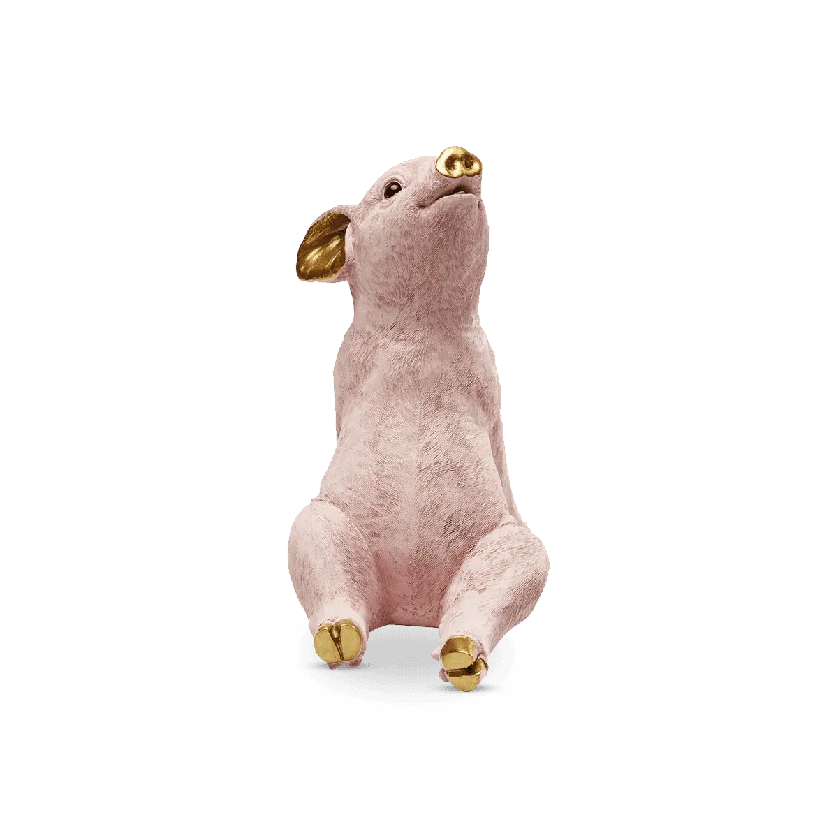 This money box not only brings loose change into play, but also good humour: the casually reclining pig with golden details is a humorous eye-catcher with functional added value. Whether on a shelf, on your desk or in the hallway – as a decorative object, this relaxed piggy bank scores points with its charm and style. It is particularly effective in modern interiors, combined with black and white elements, pop colour accents or clean design. Ideal for anyone who doesn't want to give up a wink of humour when saving – funny, decorative and simply irresistibly chilled.