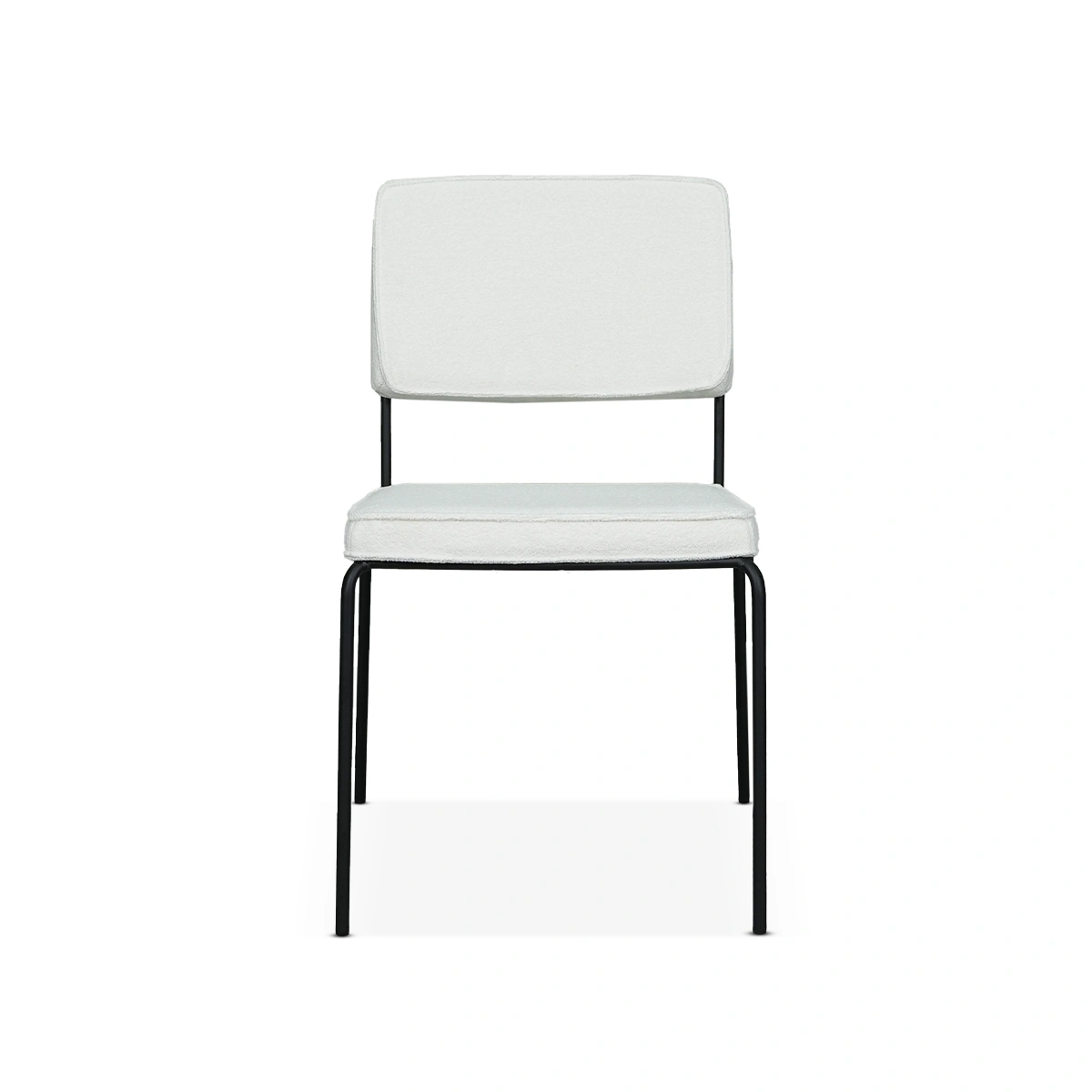 The Monica Dining Chair offers a modern, minimalist look with its sleek metal frame and comfortable fabric seat and backrest. The white and black color combination creates a striking contrast, making it easy to pair with a variety of dining table styles. Lightweight yet sturdy, this chair adds both style and comfort to your dining space. Care instructions: Wipe fabric with a soft, damp cloth or use neutral soap if needed. Do not use harsh chemicals.