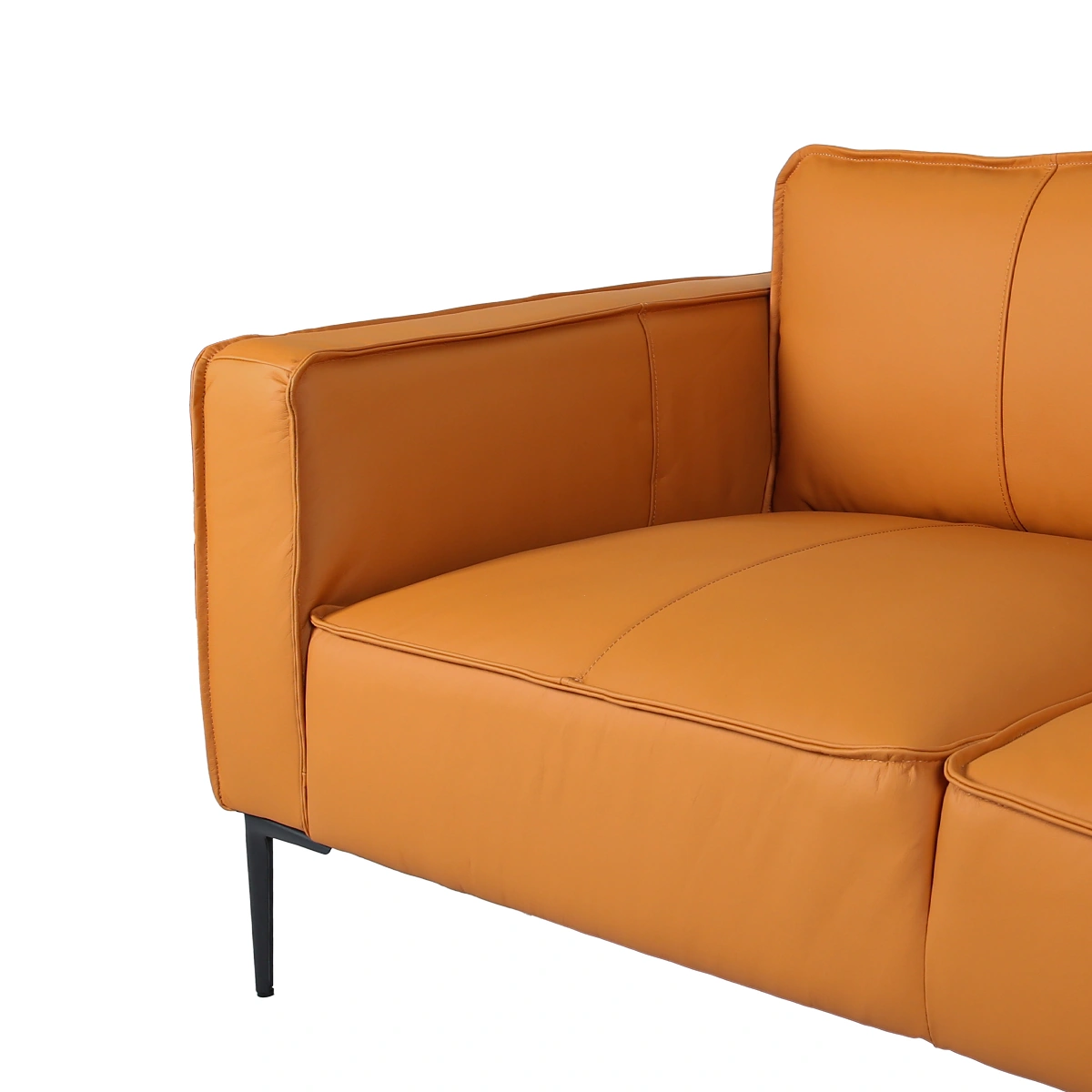 Crafted with durability in mind, the Montebello features a strong LVL/LVB engineered-wood frame that ensures long-lasting stability. The seating is built with polyester foam in a high-density 120 g/m² composition, offering reliable support and comfort over years of use. Upholstered in Burton Leather Brandy 9442, it delivers a rich leather-look finish that enhances the sofa’s elegant appeal while remaining practical and easy to maintain. Sleek steel legs complete the look with a modern, understated touch that complements contemporary interiors.