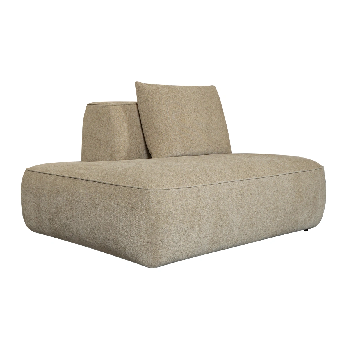 Monza Ottoman Left in beige is a fabric modular seating component designed to enhance contemporary lounge layouts with additional comfort and flexibility. Its generous form and neutral tone complement modular sofa systems. Upholstered in polyester fabric, it features supportive comfort foam and a sturdy frame of beech, spruce wood, and engineered wood. Plastic legs provide reliable support and stability. Dimensions: L 134 cm, W 106 cm, H 80 cm.