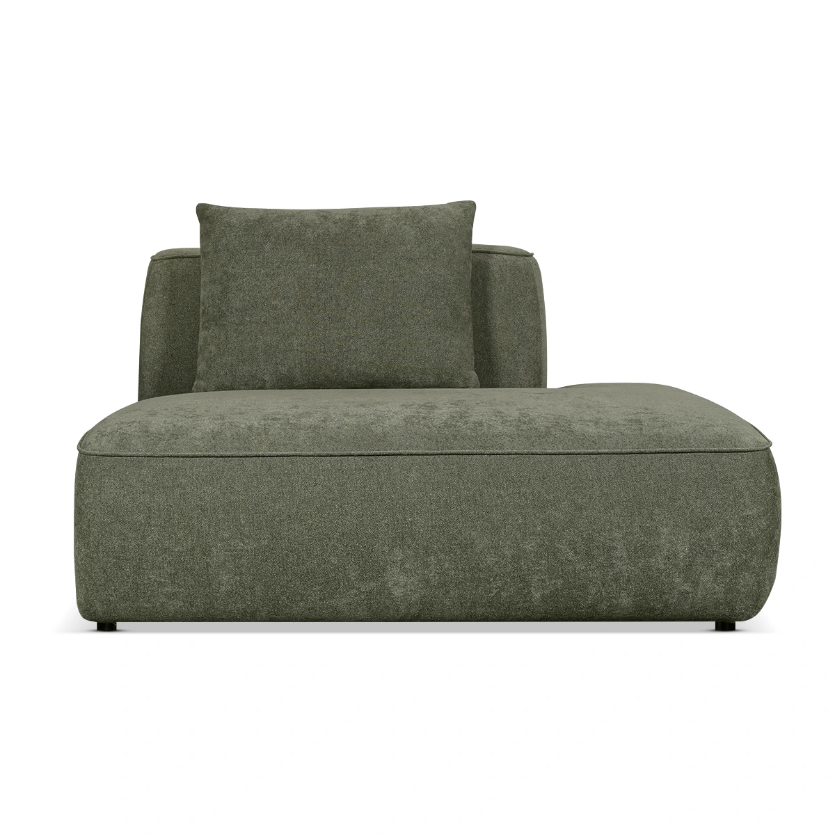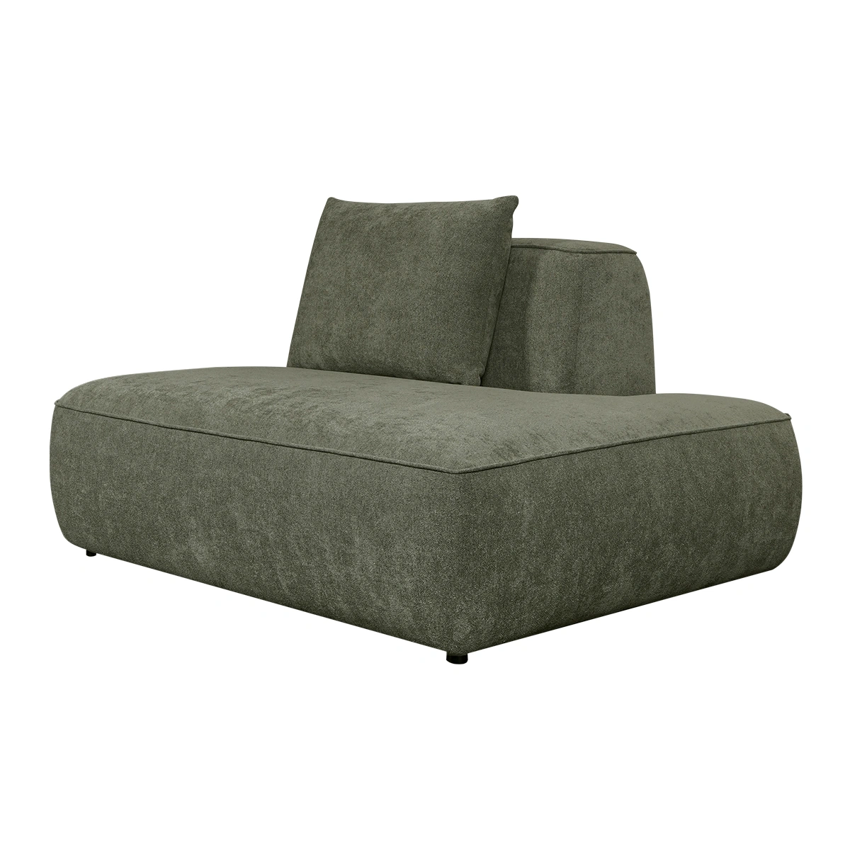 Monza Ottoman Right in green is a fabric modular seating component designed to complement customizable sofa layouts with contemporary appeal. Its balanced proportions and rich upholstery tone create visual interest while enhancing seating flexibility. Made with polyester fabric upholstery, it includes supportive comfort foam and a strong frame of beech, spruce wood, and engineered wood. Plastic legs ensure durability and stability. Dimensions: L 134 cm, W 106 cm, H 80 cm.
