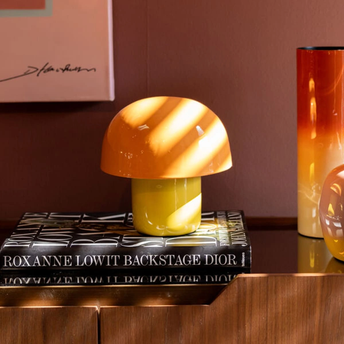 Mushroom Duo Table Lamp in Orange Steel, Compact Size