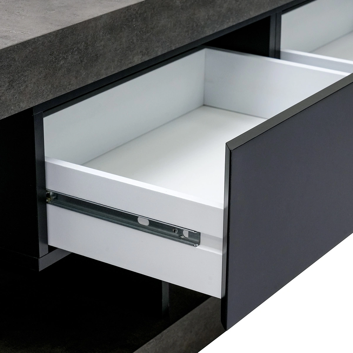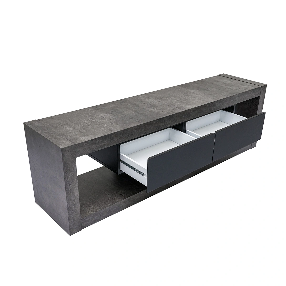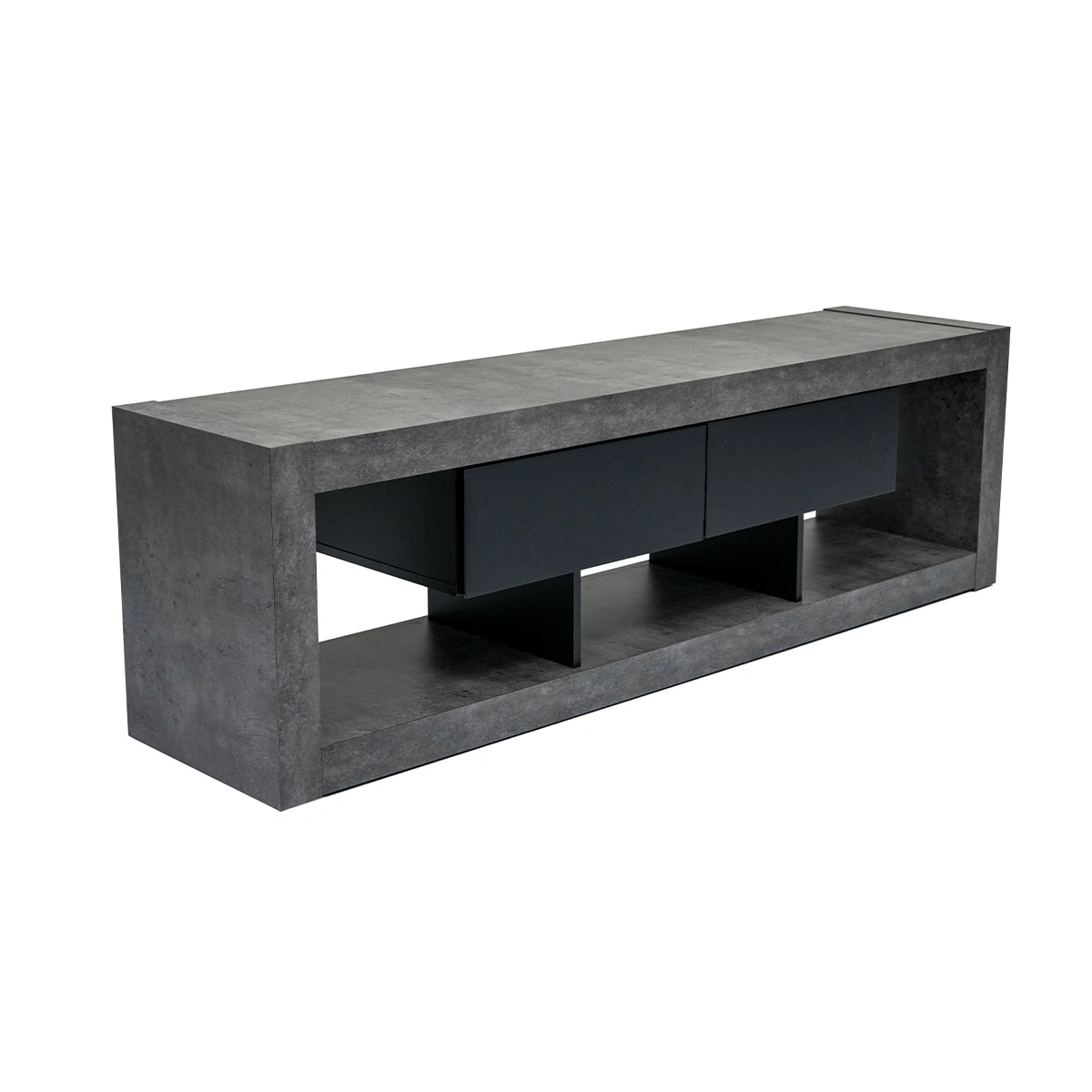 Nara TV Stand Low, Concrete Look, Matte Black