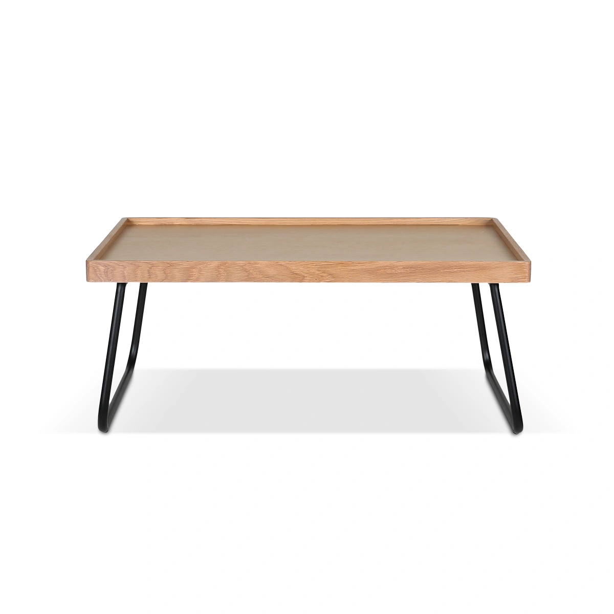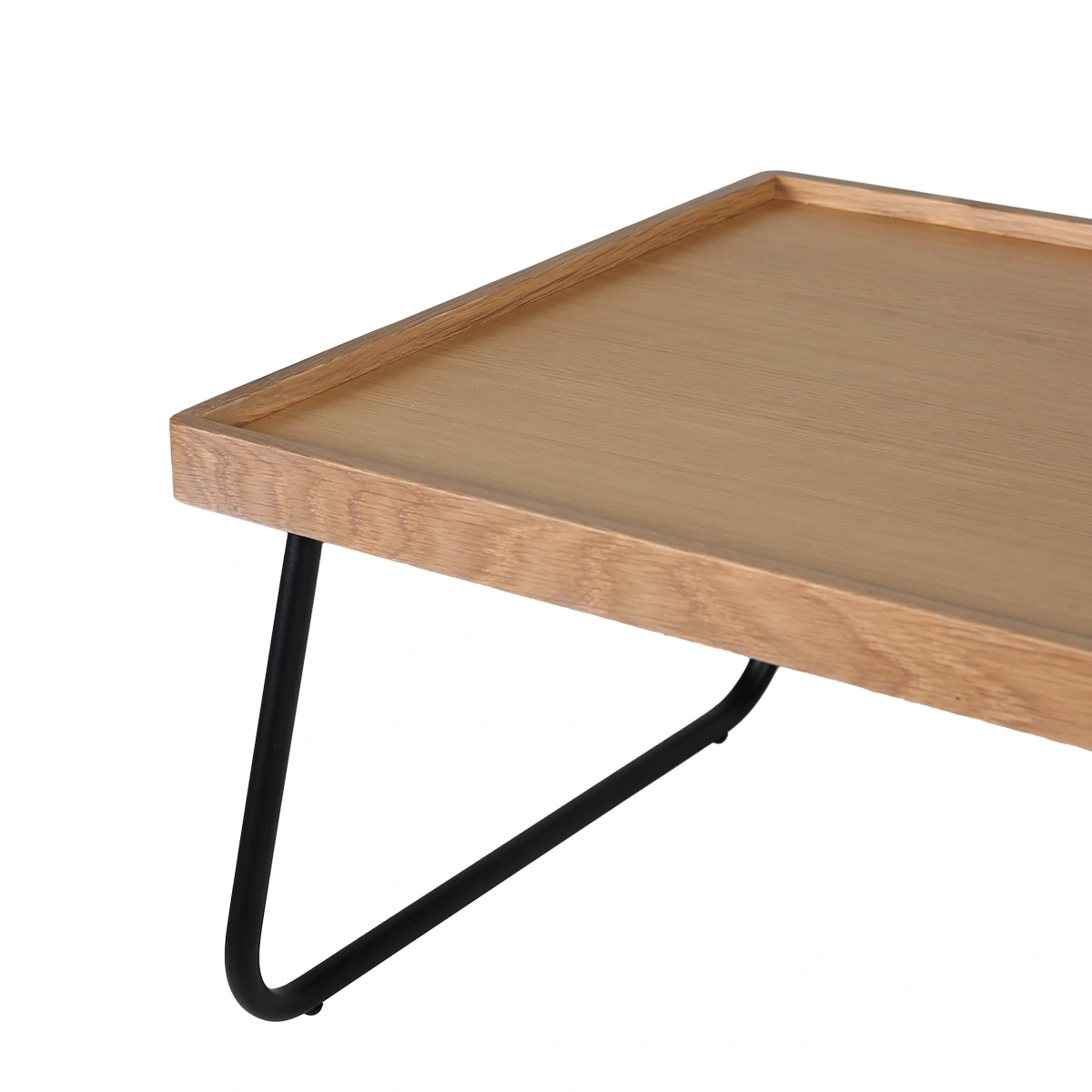 Enjoy everyday convenience with the Norwich bed tray in oak. A smooth oak veneer top with lacquer finish rests on black metal legs, offering stability and a clean, modern look. Suited for breakfast in bed, reading, or working comfortably from a sofa or bedroom. Pairs well with other items from the Norwich collection. Explore coordinating pieces.