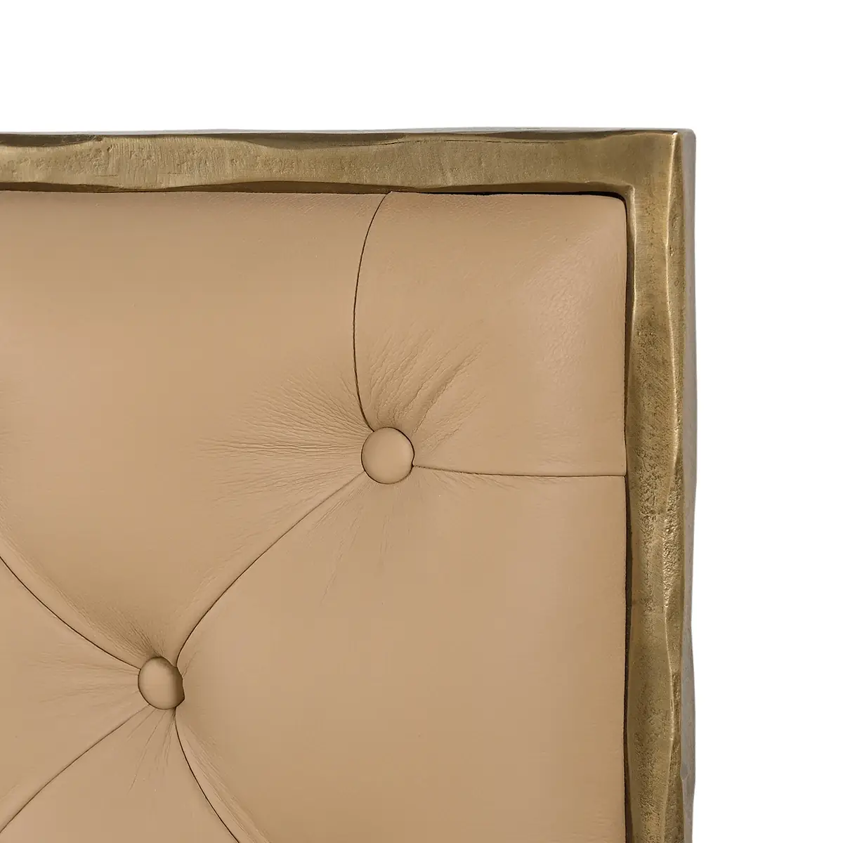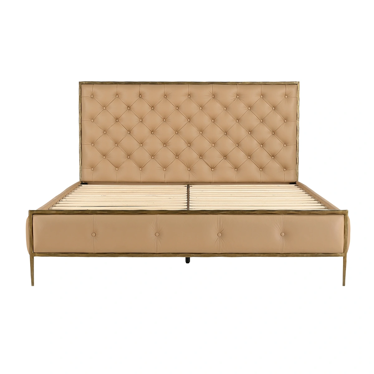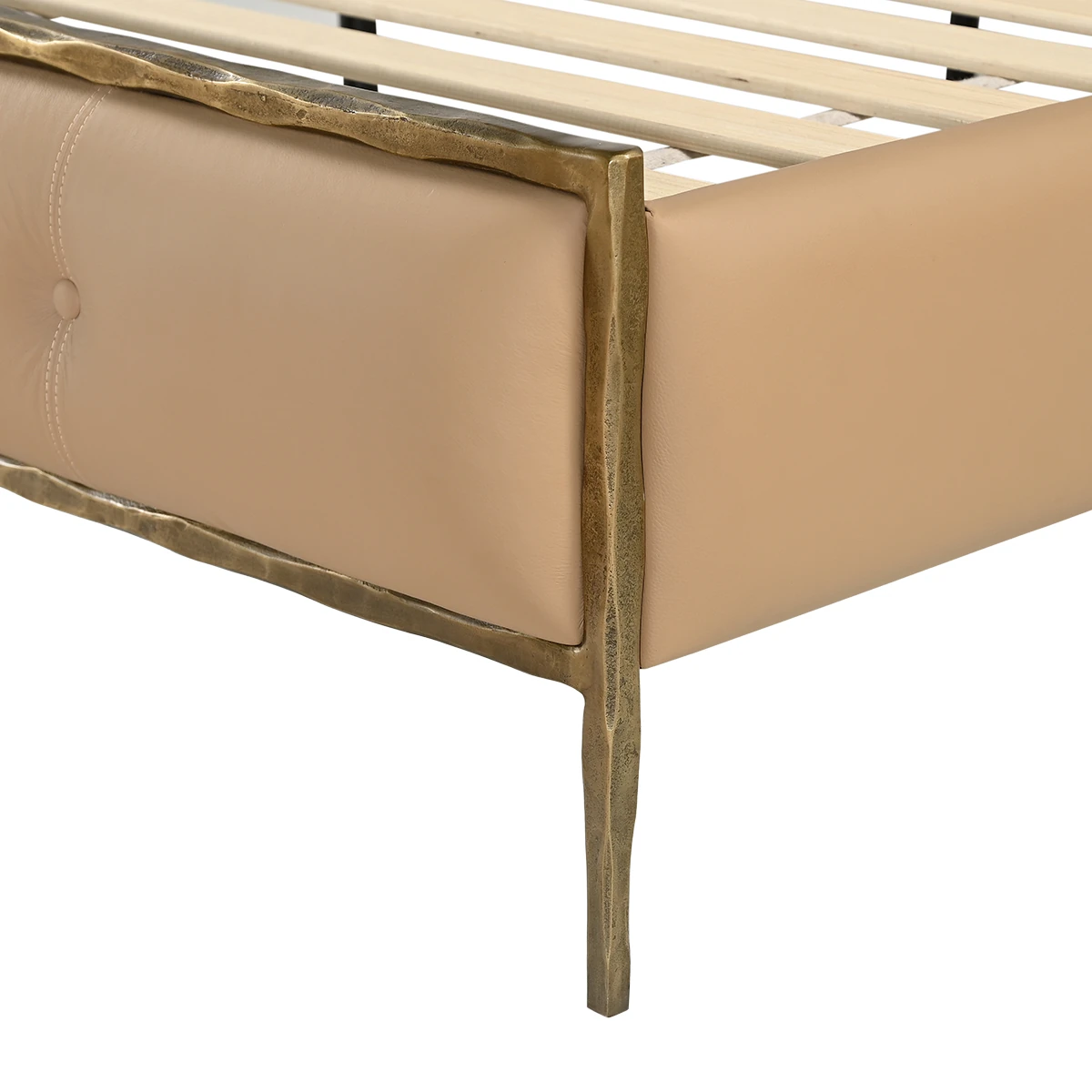 Nyra King Size Bed – Brass | Buff Leather Upholstery, Padded Comfort & Luxurious Statement Design