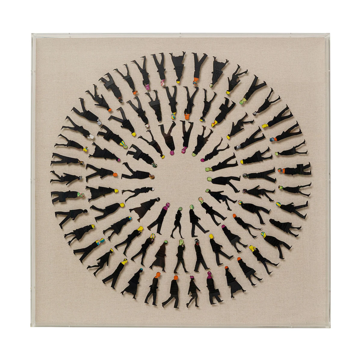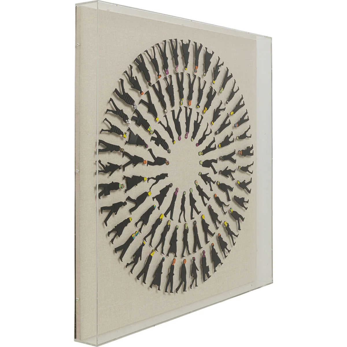 - Elaborately designed object in an acrylic display - A square picture for the wall and an artistic decoration for your home - Elaborately produced with attached figures and three-dimensional effect - The natural-coloured background is made of linen - Hooks for fastening to the wall already mounted
