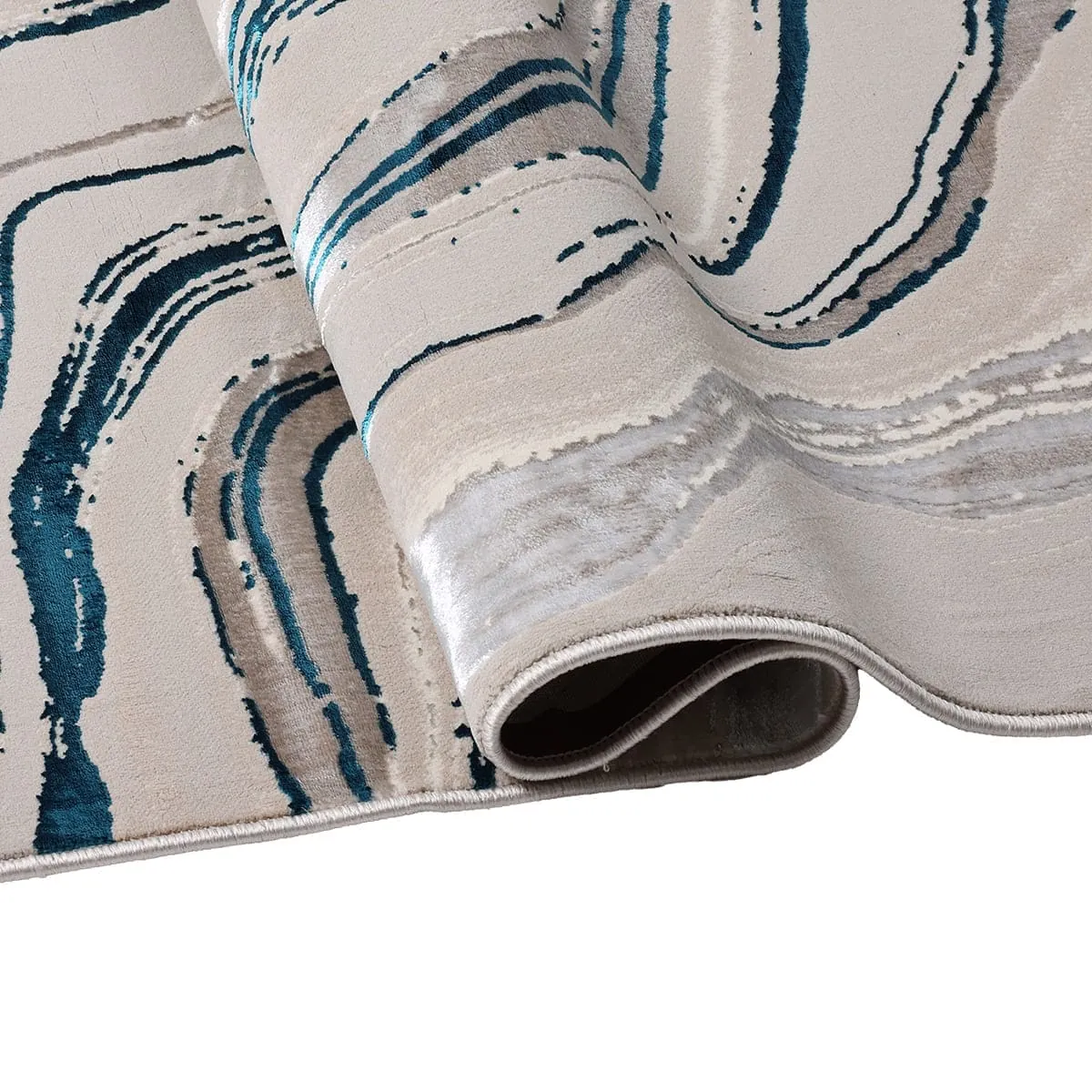 Introducing the Ocean Carpet Small, a rug that redefines elegance with its calming Beige Teal hues and coastal inspirations.