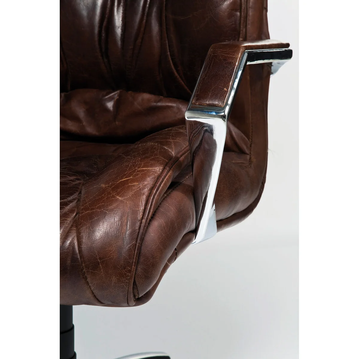 An exclusive leather armchair with a high feel-good factor – Whether it's in a pleasantly furnished workroom at home or fashionably staged in a modern office, the Cigar Lounge swivel chair is suited to a range of applications. It will make anyone feel good. An interesting mixture of a lived-in surface and down-to-earth fabrics! For perfect seating comfort the height of this armchair can be adjusted from 113 to 119 cm. Seat height: 49-54 cm. Aluminium base, leather cover. Cigar Lounge is also available as a series. This armchair is the best proof that the company office or home office can be given a cosy and comfortable ambience!