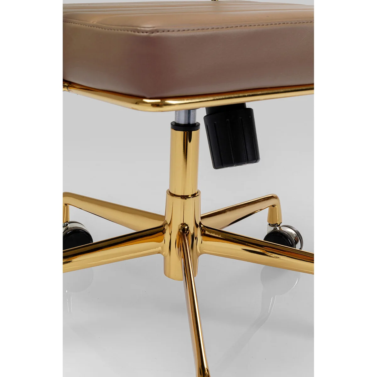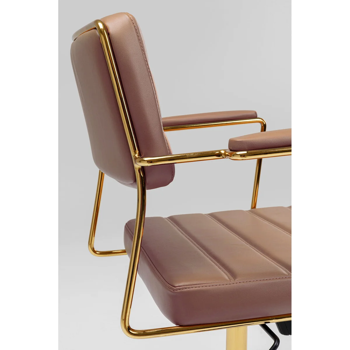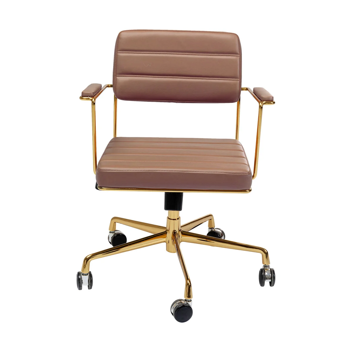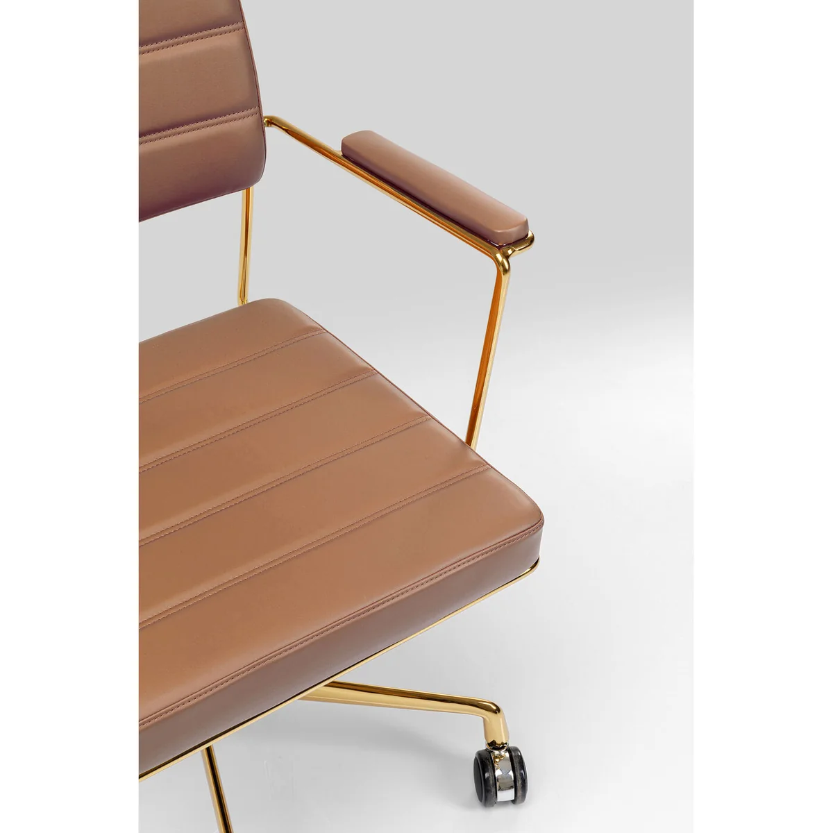 ● Swivel chair in brown with castors and gas pressure spring for height adjustment for the office and at home ● Sturdy, stable frame in silver made of chromed aluminium. 360 degree swivel function ● Backrest and seat with attractive quilted seams, comfortably upholstered for long creative sessions or gamer rounds ● Comfortable office chair in modern style with hints of retro design ● Easy-care, hard-wearing cover in leather look. Comfortably upholstered armrests