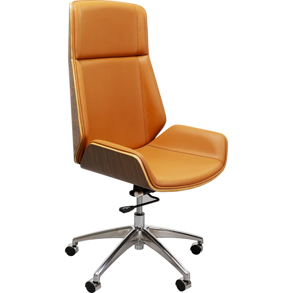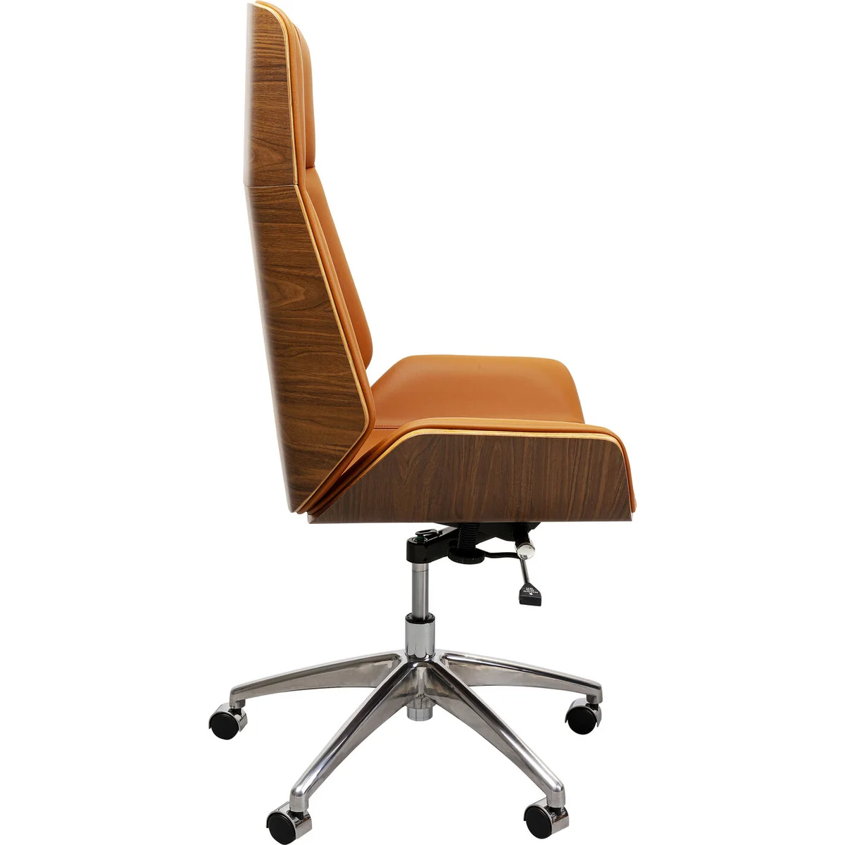 ● A choice executive chair: a swivel office chair in an exclusive ash wood and leather look ● Functional: The seat height can be adjusted individually and adapts to body size and situation ● Low armrests, a high backrest and soft upholstery ensure optimum seating comfort ● Practical: the upholstery in leather look is robust and easy-care and can be wiped with a moist cloth ● The study now becomes a living room with this stylish chair!