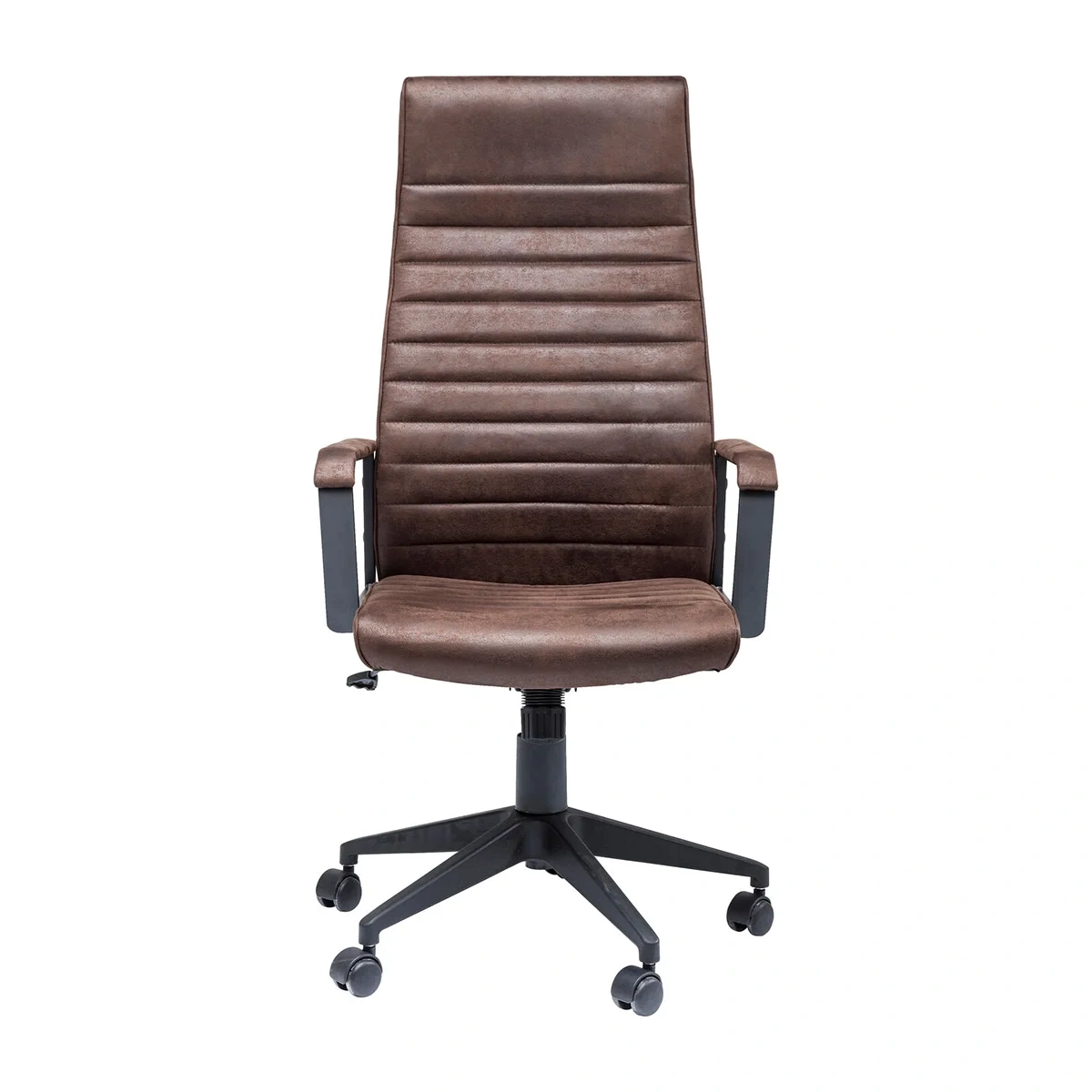 Please turn around! The upholstered office swivel chair Labora High in brown impresses with its functions: it rotates, tilts and is height adjustable. In addition Labora High offers an extra-high backrest, a timelessly beautiful design and a hard-wearing cover in the vintage leather look. The resistance of the tilt mechanism of the backrest can be individually adjusted to your physical requirements. The stylish office favourite moves smoothly on five high-quality castors. This office chair makes work much more enjoyable! Labora is available in many variations from the shop.