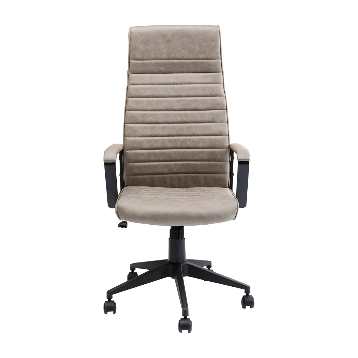 Please turn around! The upholstered office swivel chair Labora High in grey impresses with its functions: it rotates, tilts and is height adjustable. In addition Labora High offers an extra-high backrest, a timelessly beautiful design and a hard-wearing cover in the vintage leather look. The resistance of the tilt mechanism of the backrest can be individually adjusted to your physical requirements. The stylish office favourite moves smoothly on five high-quality castors. This office chair makes work much more enjoyable! Labora is available in many variations from the shop.