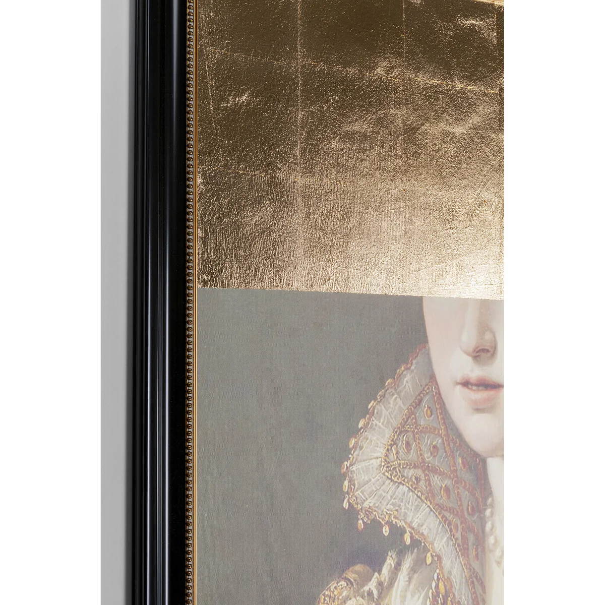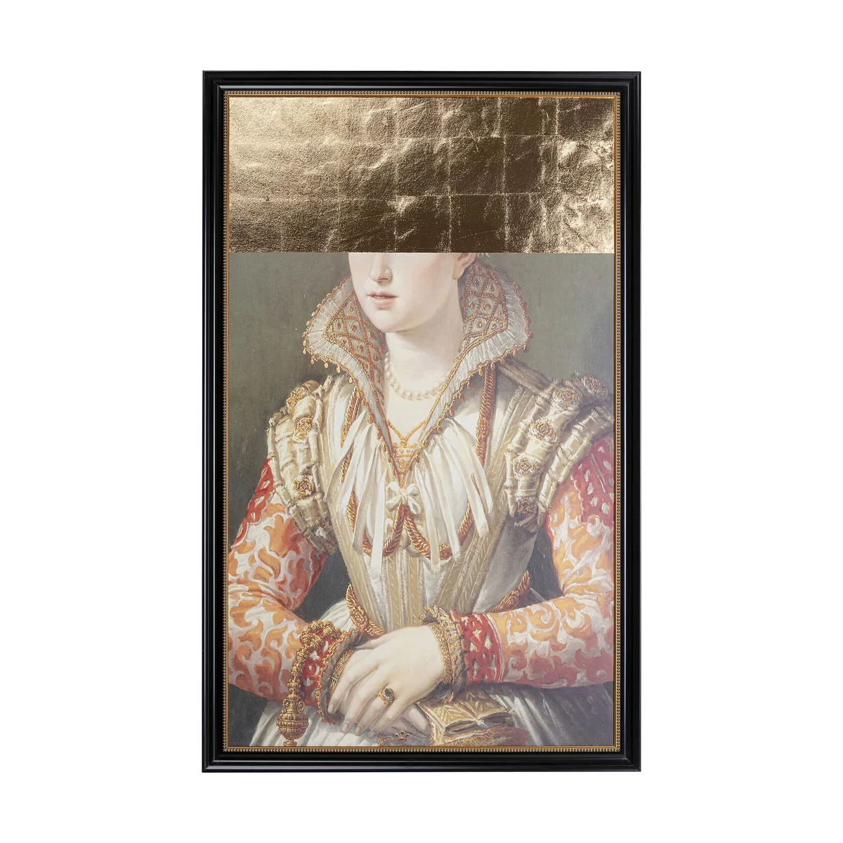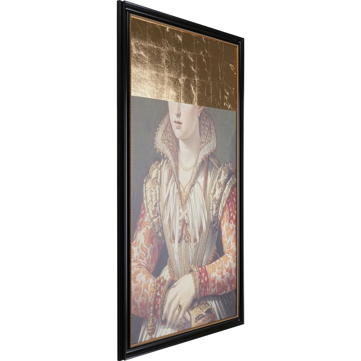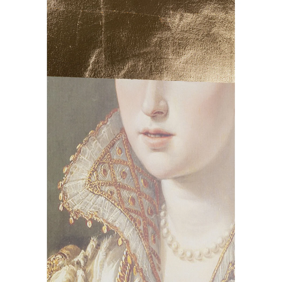The artistic transformation with the application of gold in the picture makes this historical portrait of a lady an unusual wall decoration. An exclusive furnishing accessory as an upgrade for bare walls and with a subtly luxurious aura.