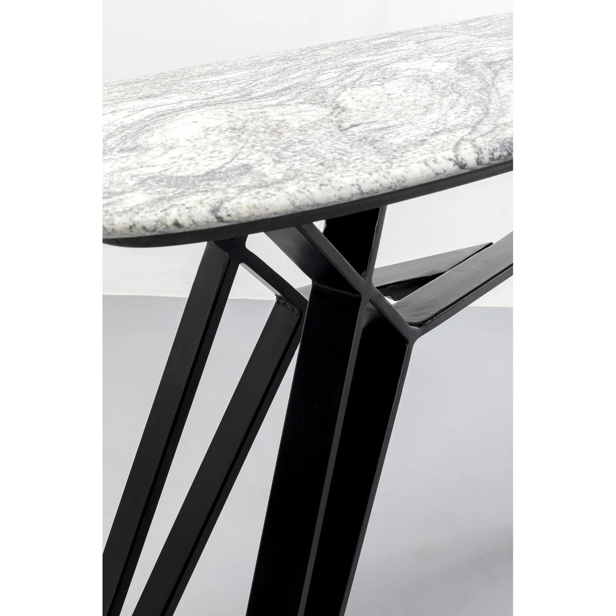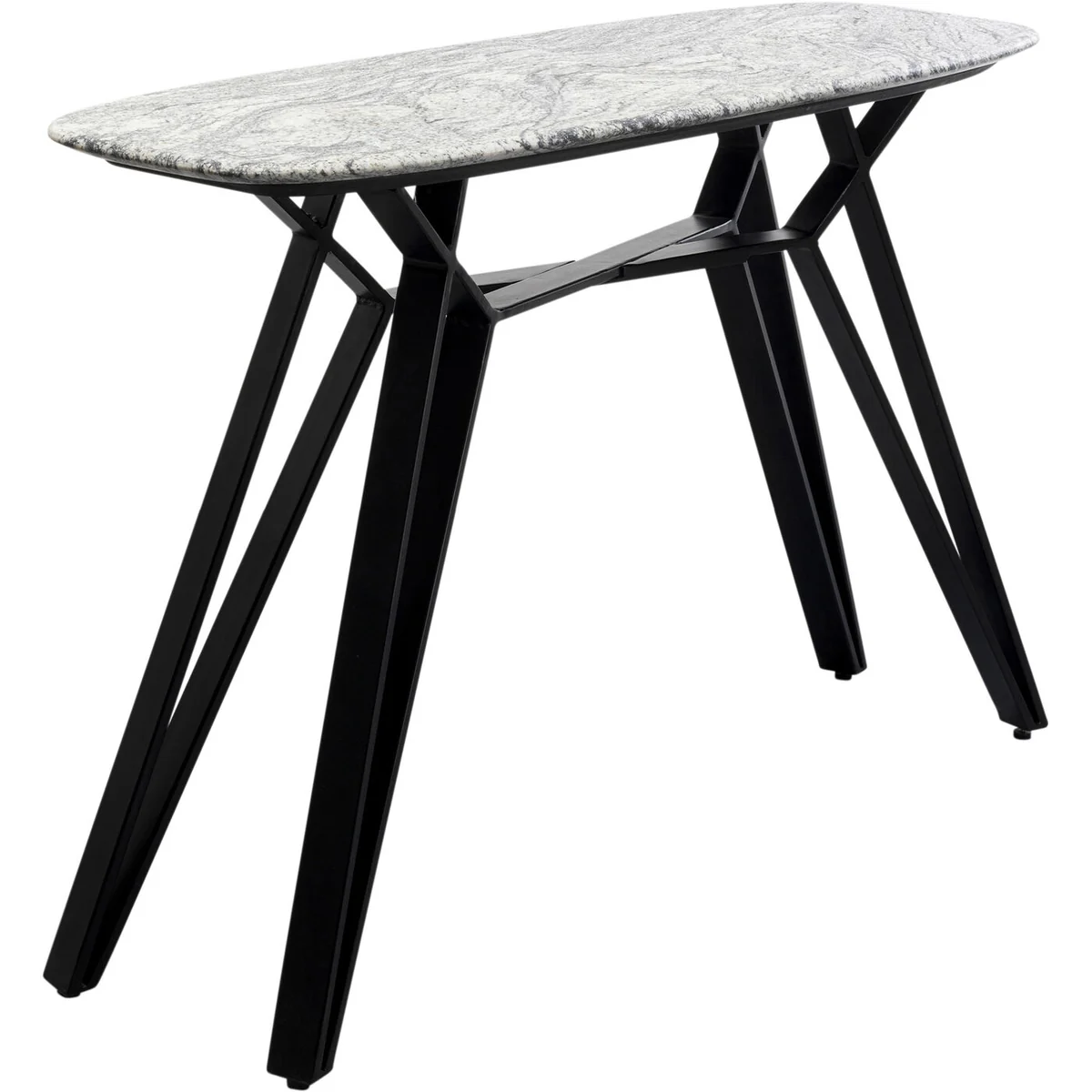 The stylish console table consists of a granite top with a marbled pattern in various shades of grey and a modern steel frame in black, which ensures stability and durability. Console tables offer countless possible uses. Whether in the hallway as a shelf for keys, bags and the like, or in the living room as a sideboard to elegantly showcase vases, picture frames and other decorative elements. And all this without taking up too much space.