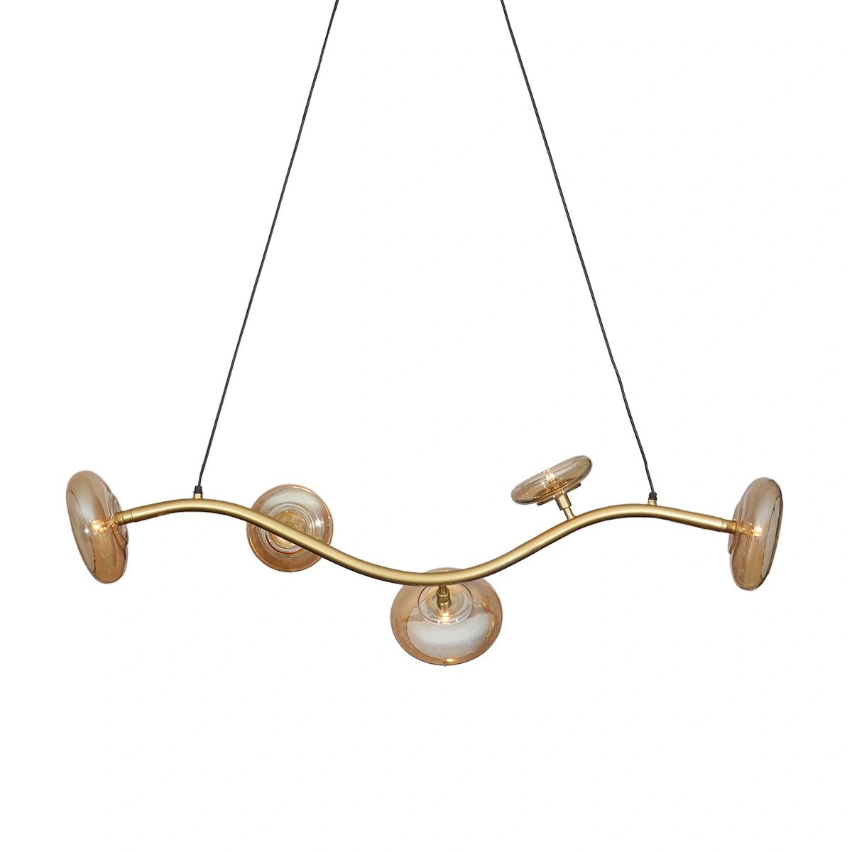 Command attention with the Oliver chandelier in gold finish. Wave-like frame and glass disc accents produce a warm, inviting glow and modern charm. Suited for dining tables or entryways, delivering subtle luxury without overwhelming the space. Pairs effortlessly with other Oliver collection pieces for a cohesive look.