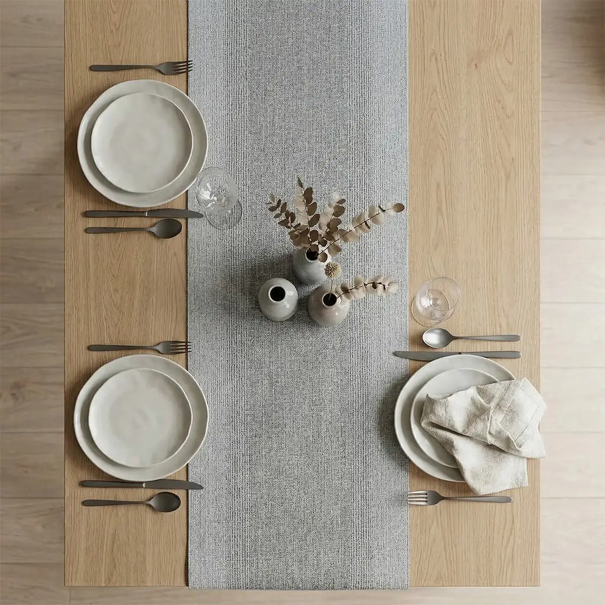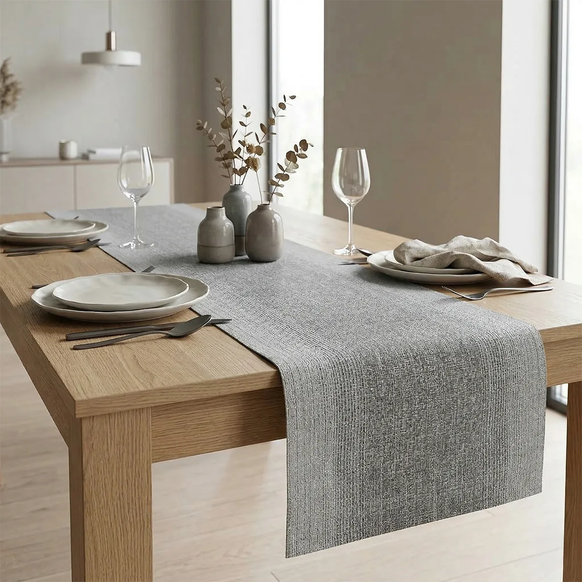 The Ombre Table Runner in silver is designed as a statement centerpiece for dining tables. Adding depth and modern elegance, it anchors table settings beautifully. Made from TerraStrand woven yarns, it features a flowing ombre effect in silver tones. The durable synthetic material resists wear while maintaining its refined appearance. This table runner enhances visual impact and cohesion. Perfect for entertaining, it elevates tables with modern sophistication.