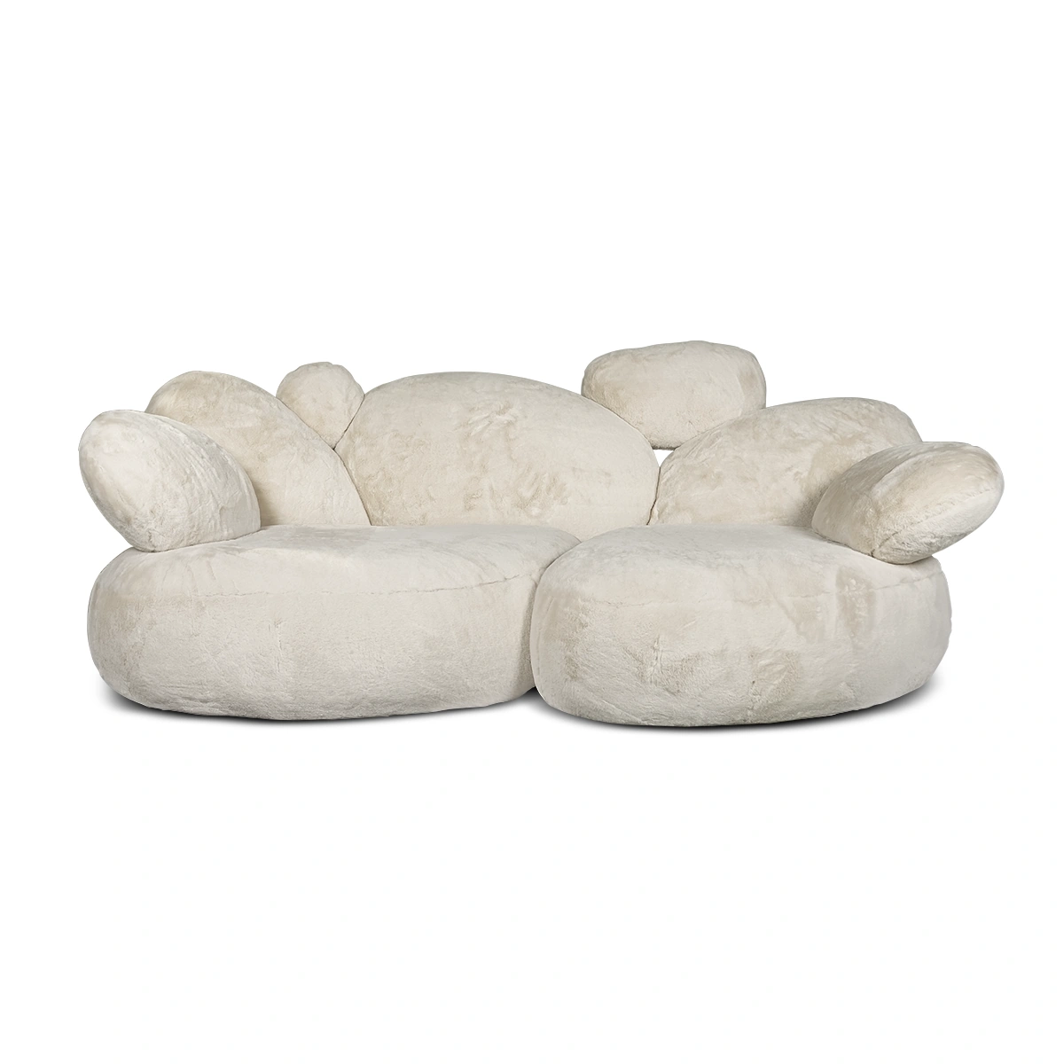 The Orbs couch embraces a unique aesthetic with its arrangement of pebble-like shapes. This innovative design not only adds a touch of artistry to living spaces but also emphasizes comfort and ergonomics. The organic, floating forms create a visually soothing atmosphere, transforming the couch into more than just furniture – a functional sculpture that complements the idea of a soft and serene environment.