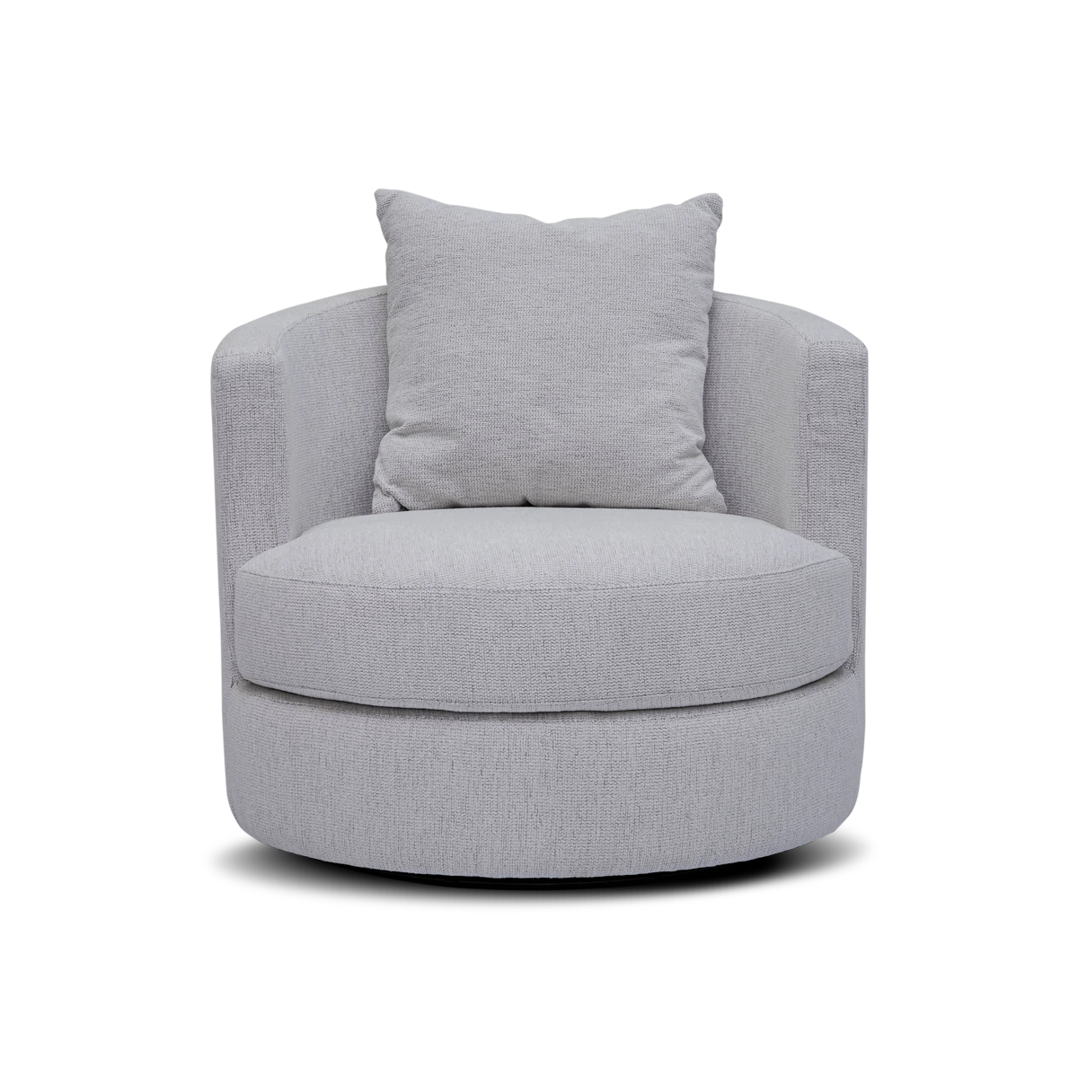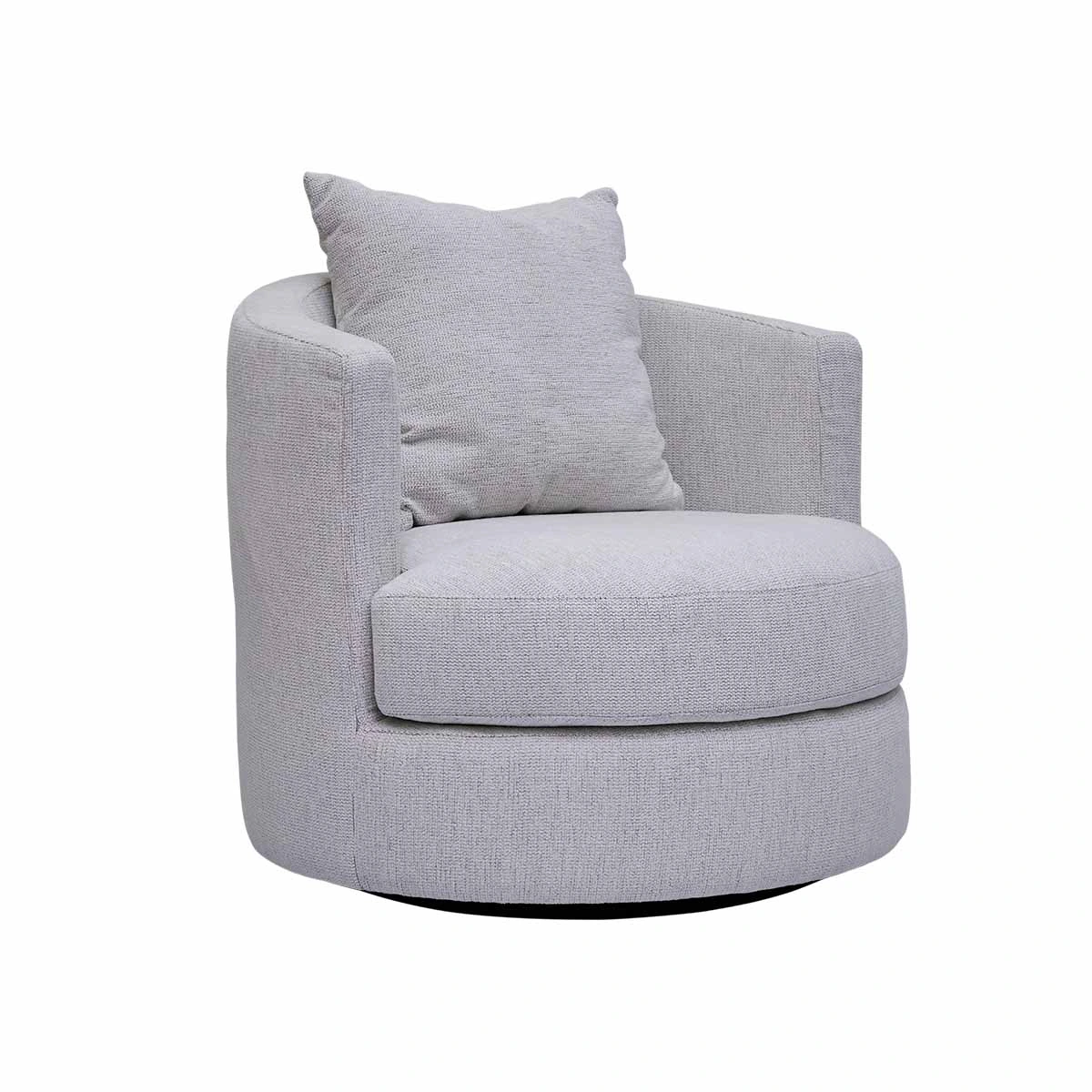 Enjoy the benefits of this armchair's swivel base, allowing you to easily redirect your focus without moving the entire chair. The off-white color palette complements various room decors, making this chair a versatile choice for any home. The cottage fabric upholstery adds a cozy, homey feel to any space.